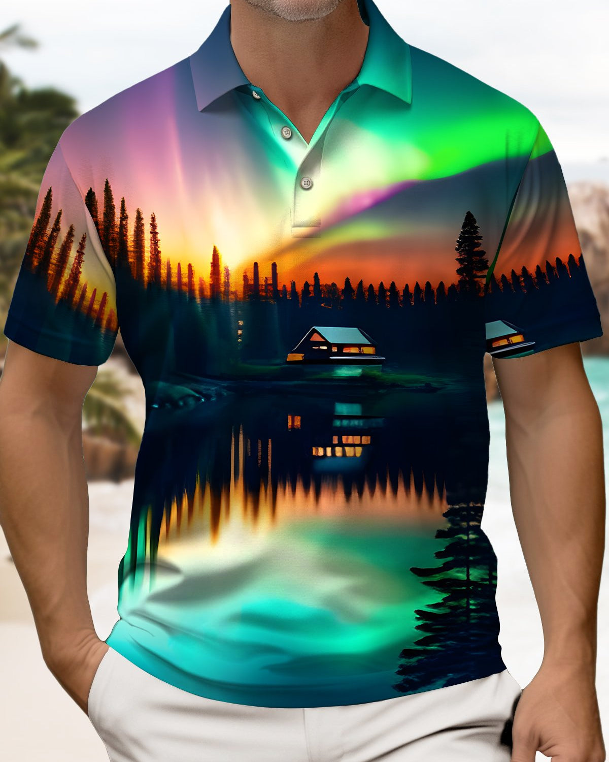 Alohadaddy Men's Visual Dislocation Print Beach Shorts