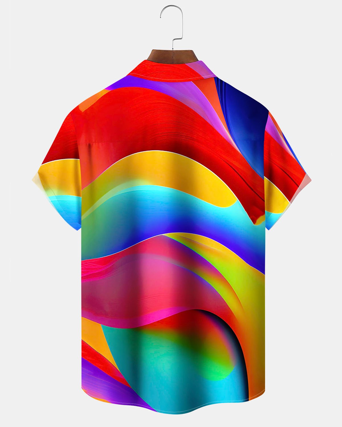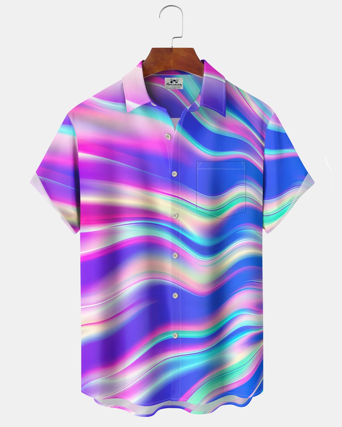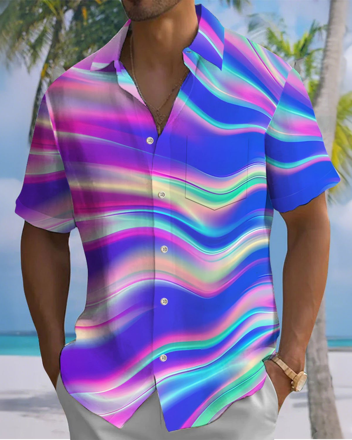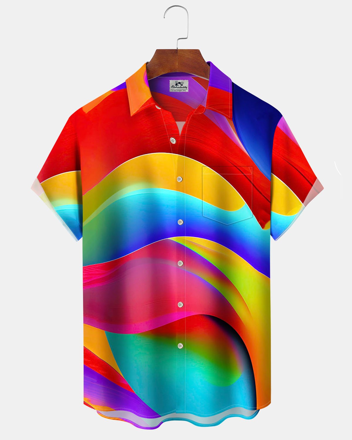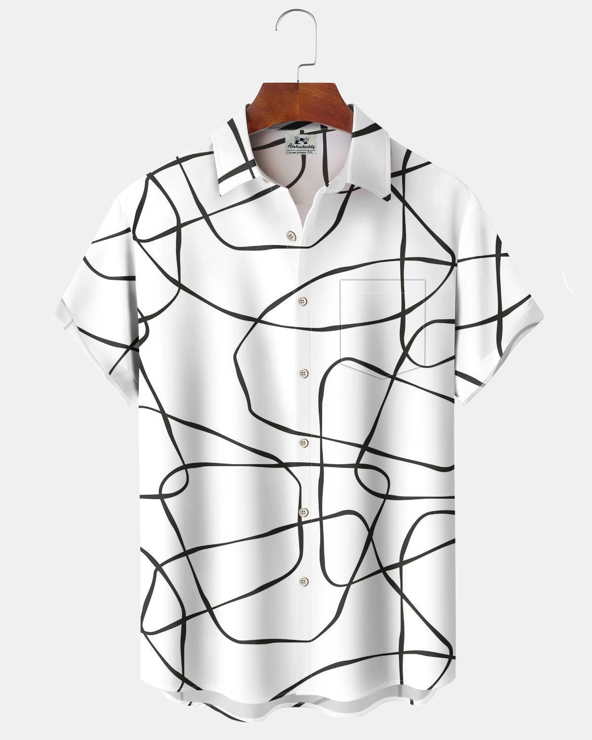 Alohadaddy® Retro Satin Glossy Printed Men's Button-Down Short-Sleeve Shirt Big & Tall