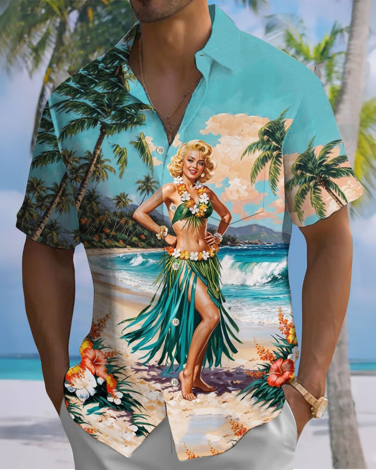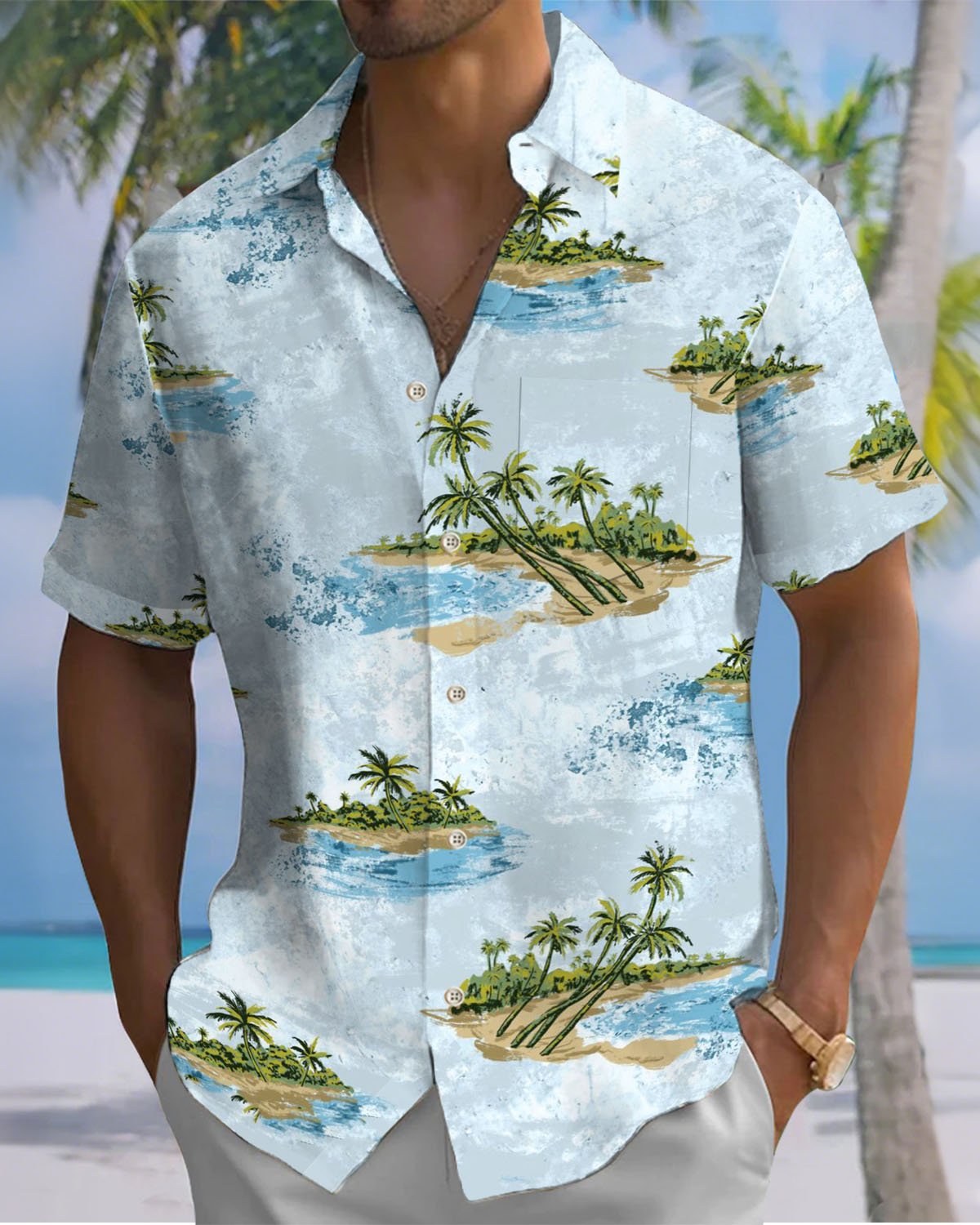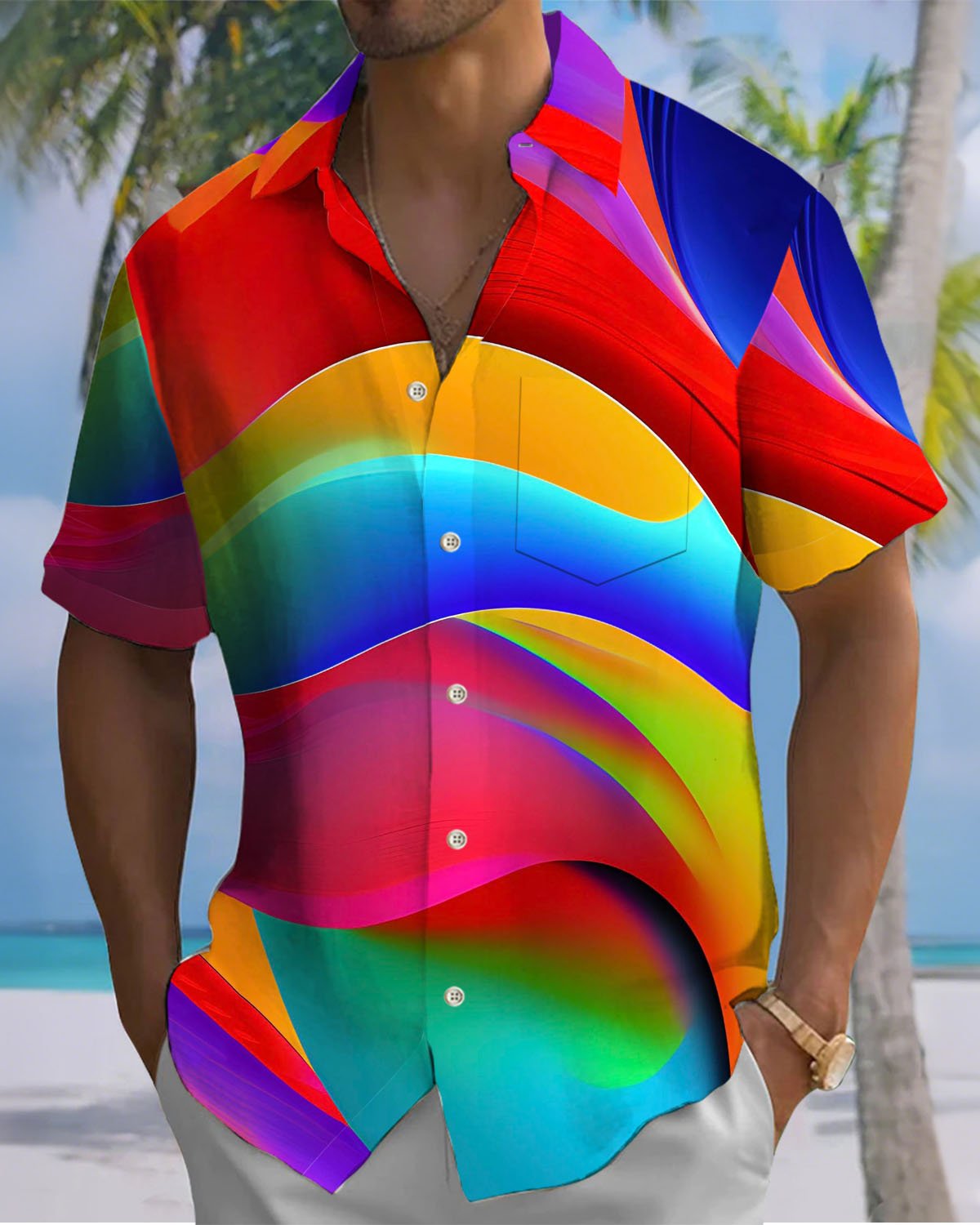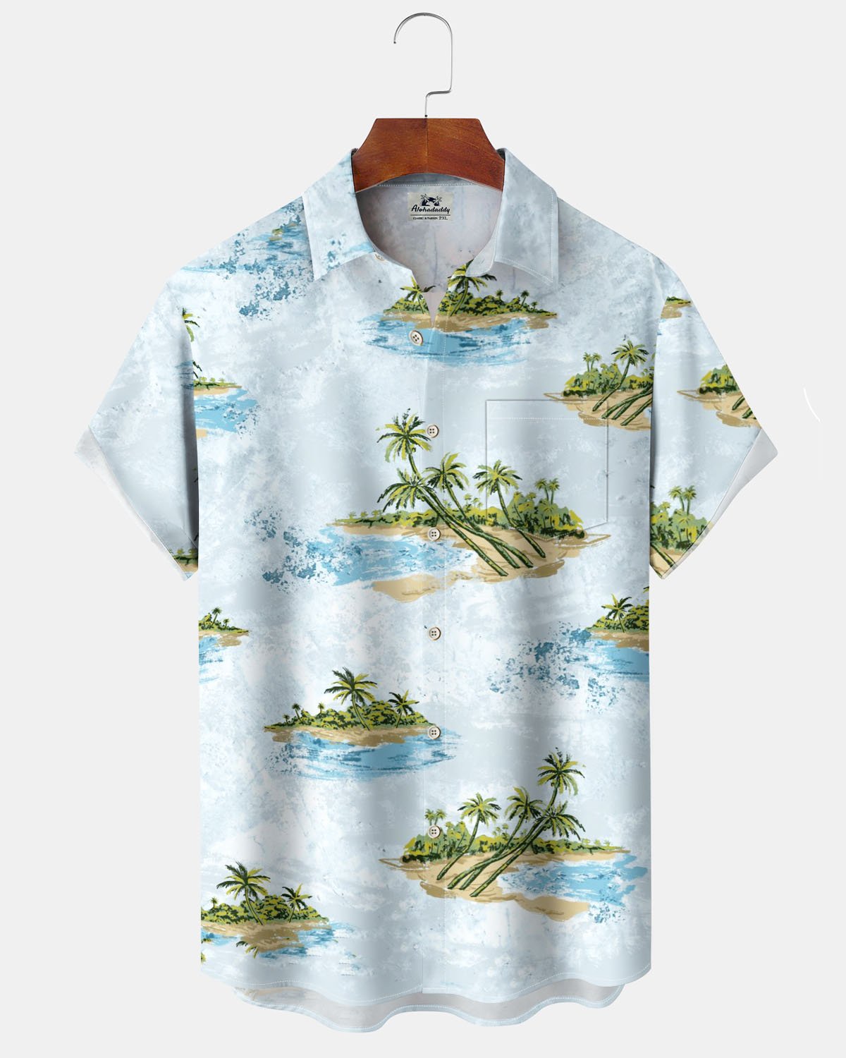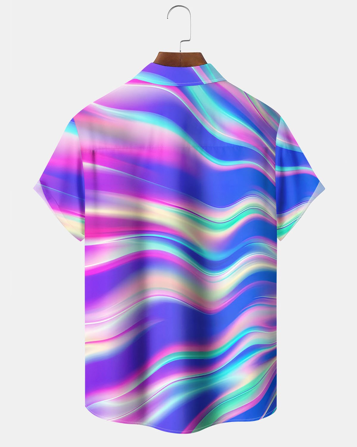 Alohadaddy® Retro Satin Glossy Printed Men's Button-Down Short-Sleeve Shirt Big & Tall