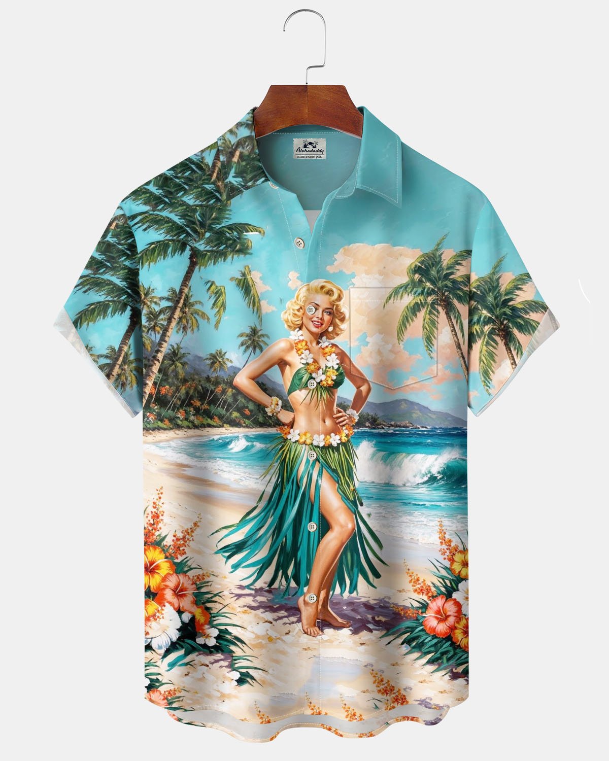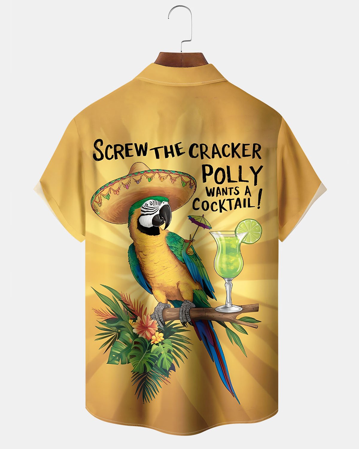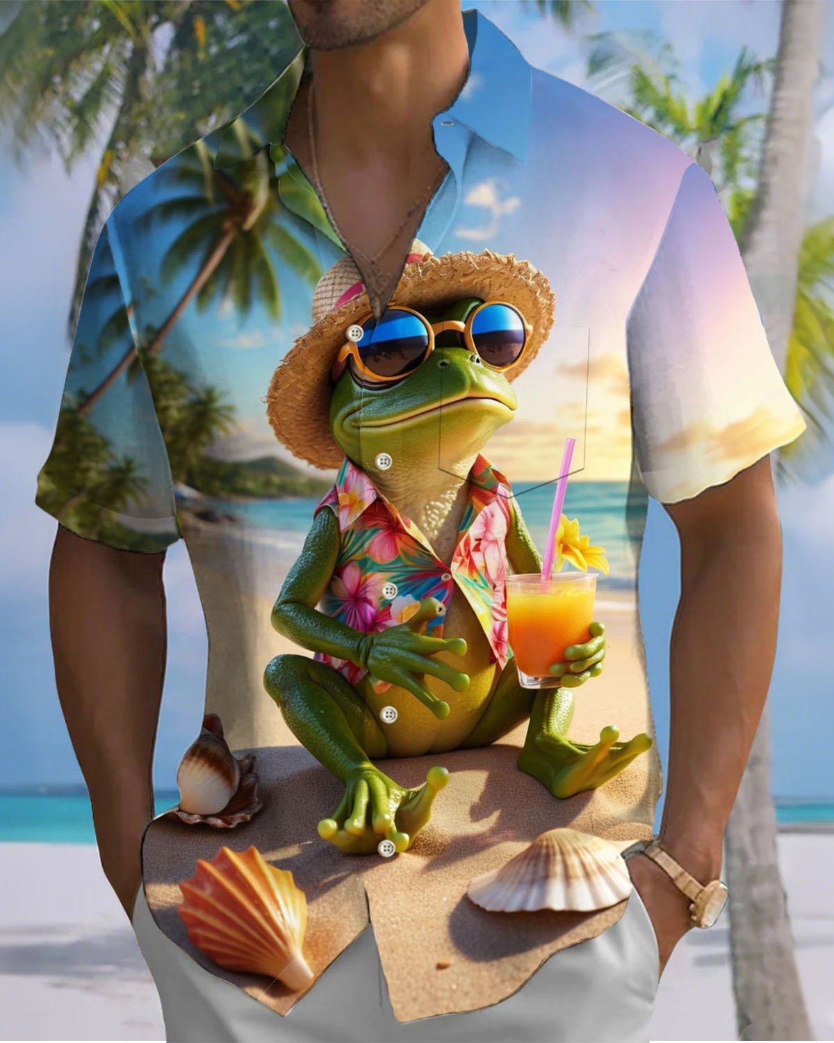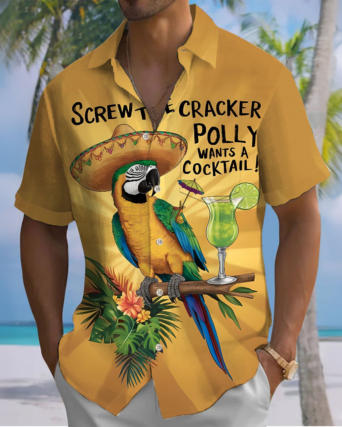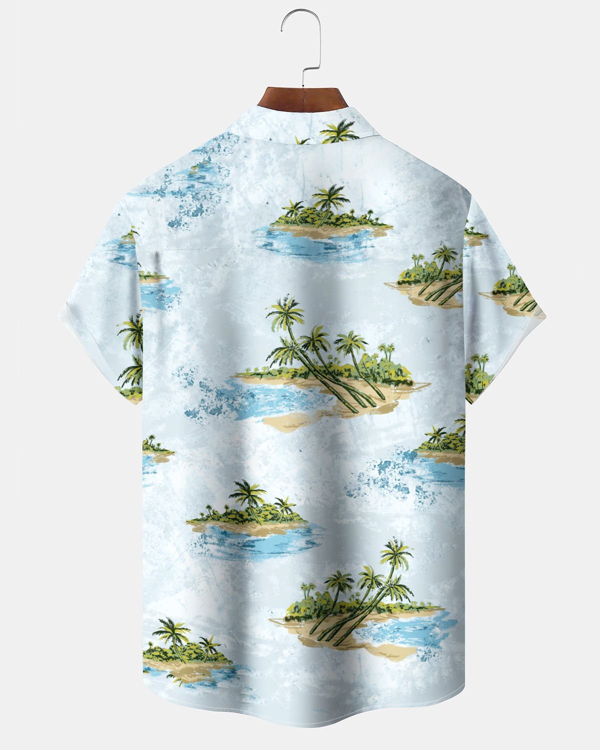 Alohadaddy® Retro Satin Glossy Printed Men's Button-Down Short-Sleeve Shirt Big & Tall