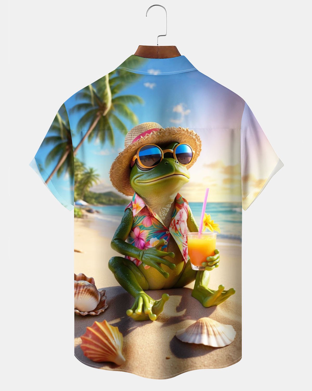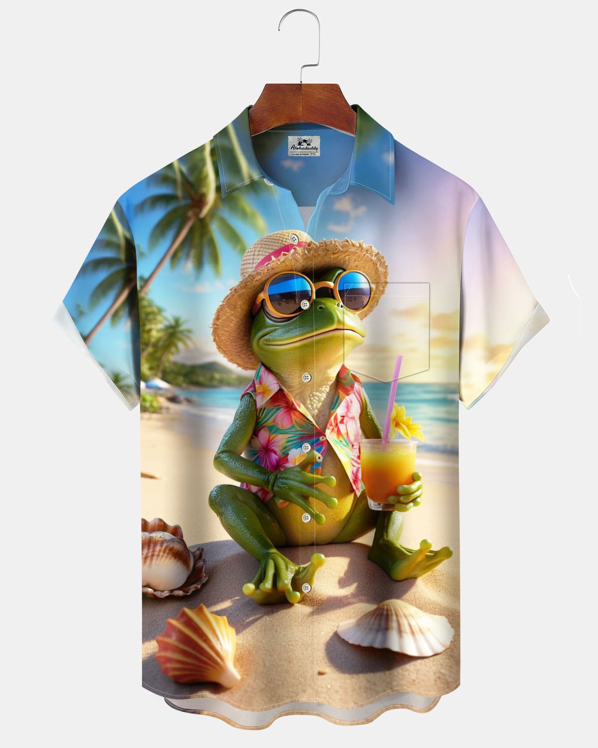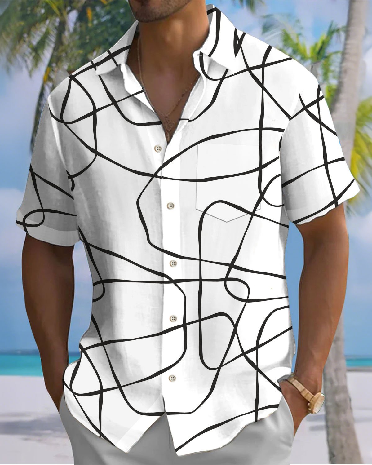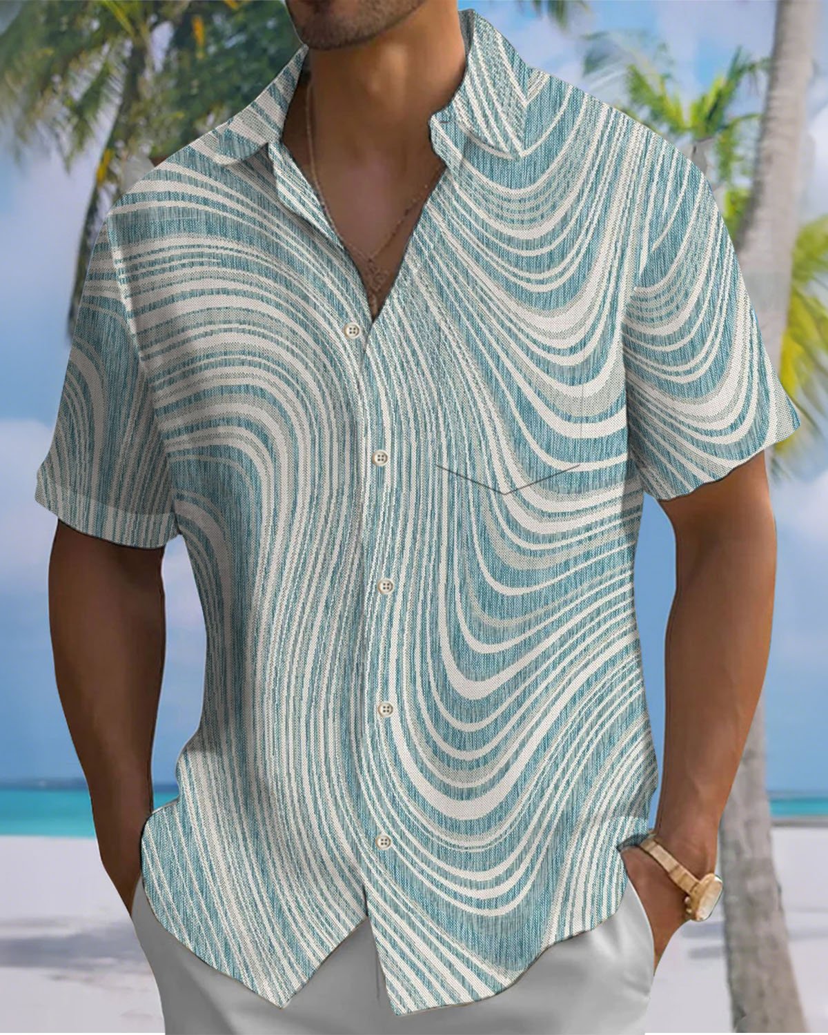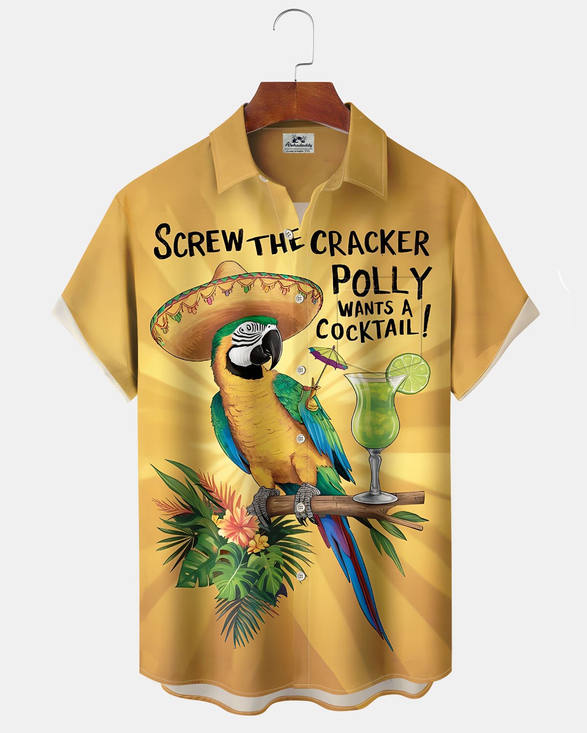 Alohadaddy® Retro Satin Glossy Printed Men's Button-Down Short-Sleeve Shirt Big & Tall