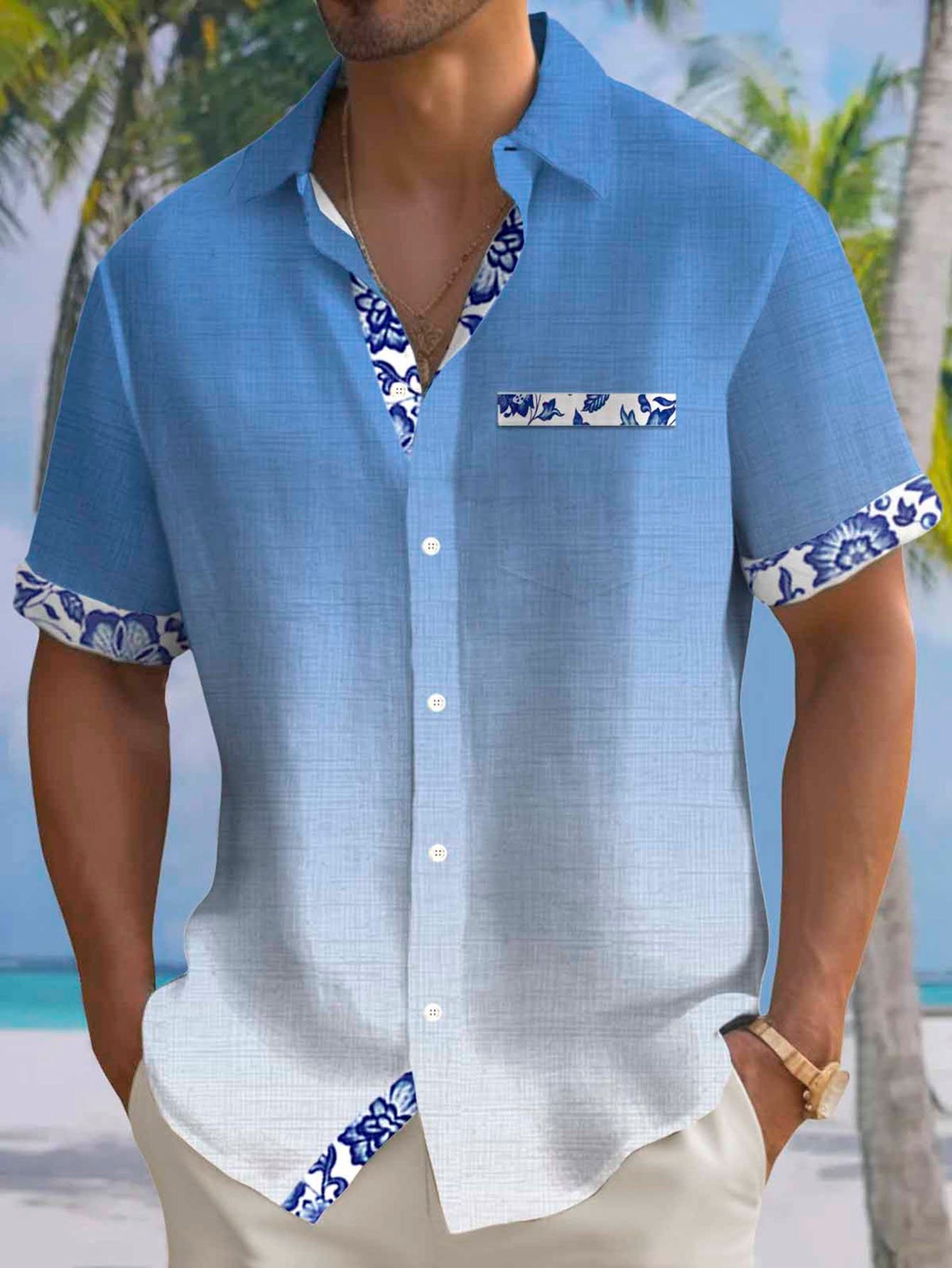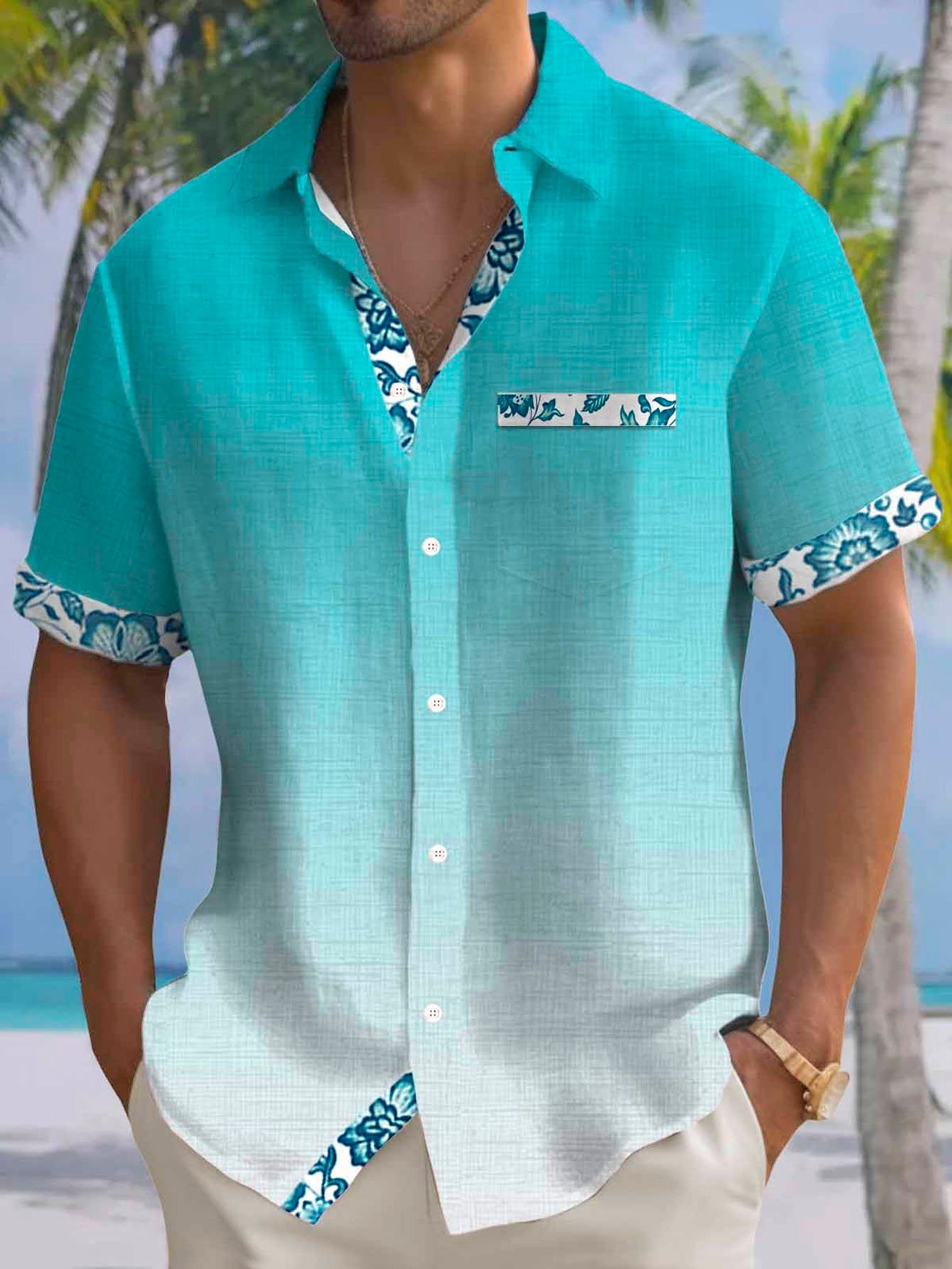 Alohadaddy® Hawaiian Floral Tropical Plant Leaf Gradient Color Vacation Shirt