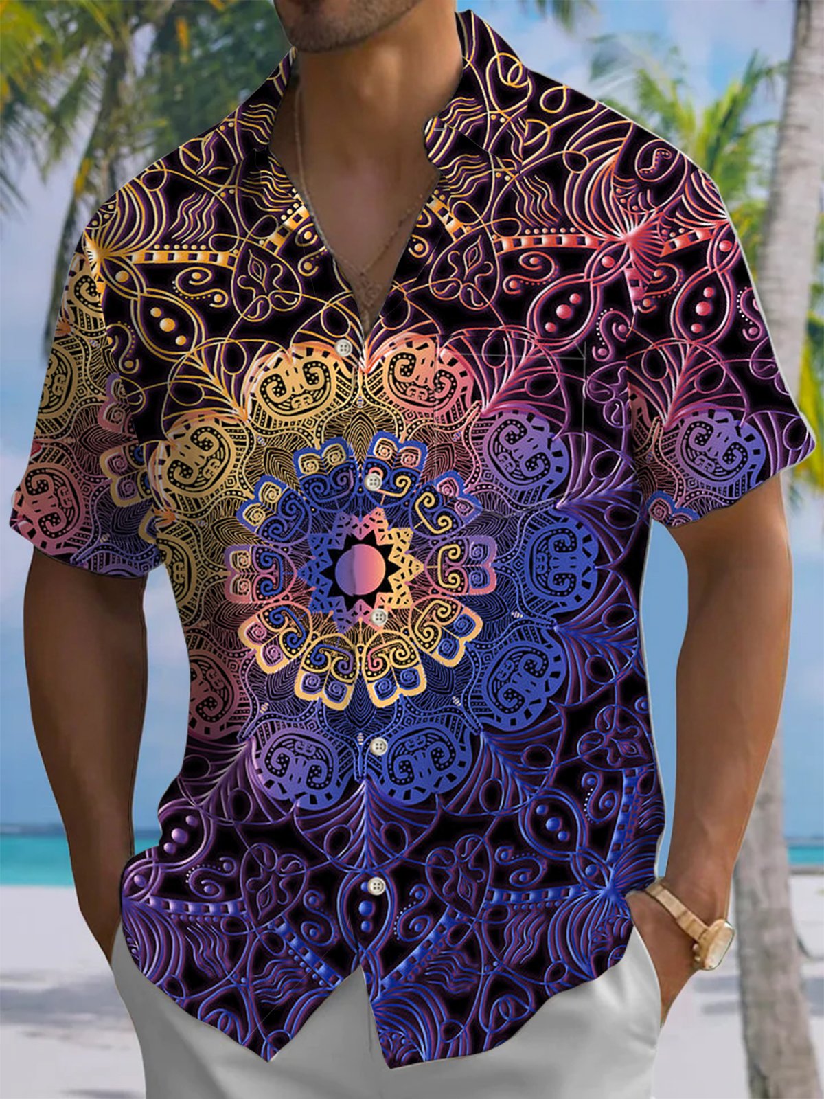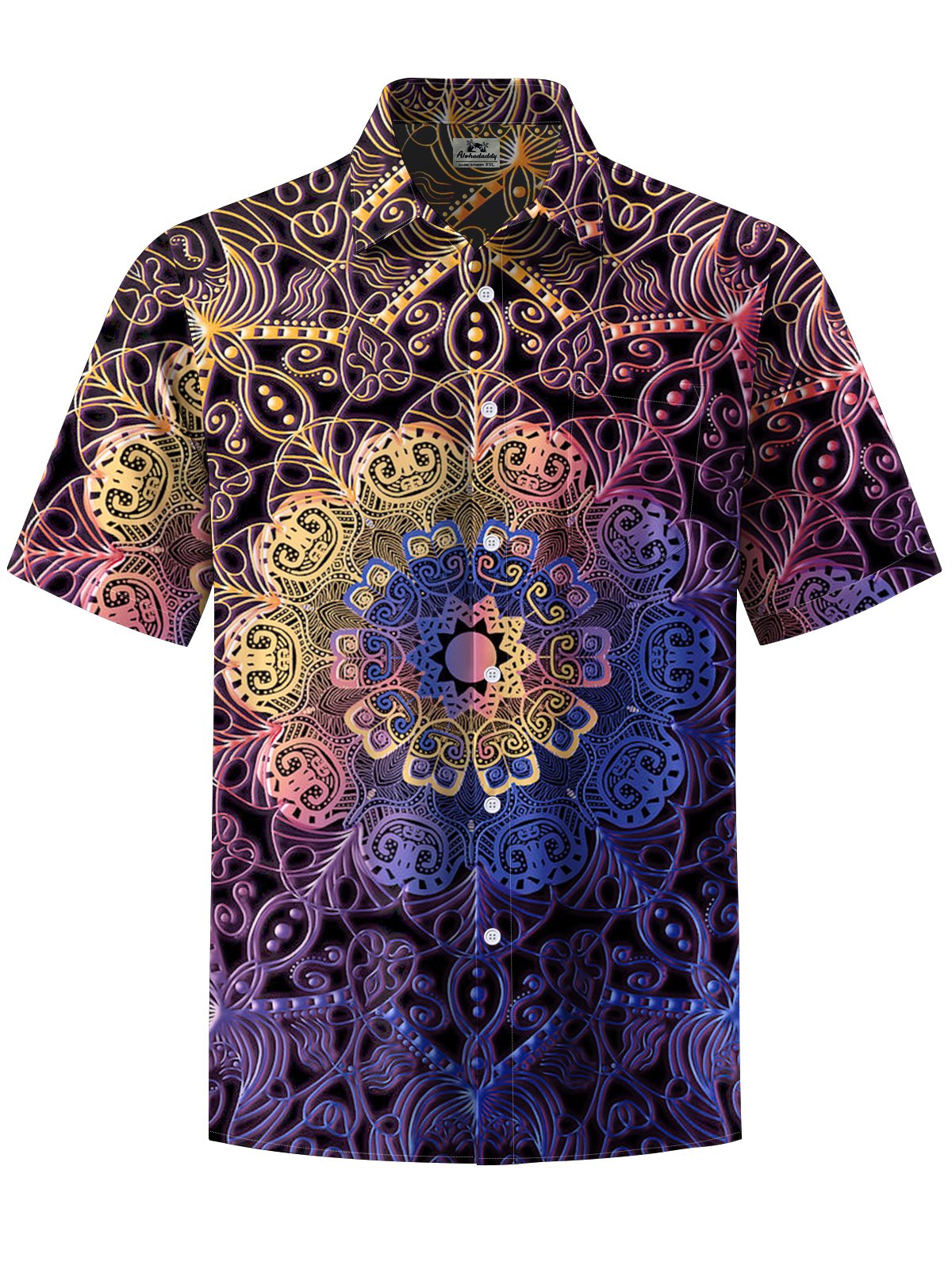 Alohadaddy® Casual Charlotte Floral Print Art Chest Pocket Men's Short Sleeve Shirt Big & Tall
