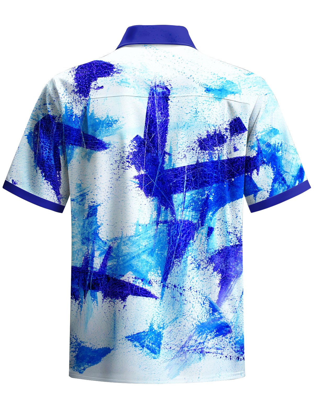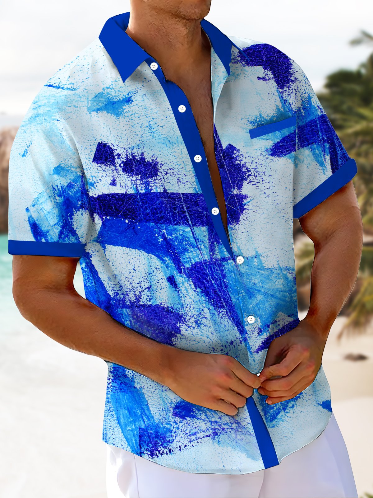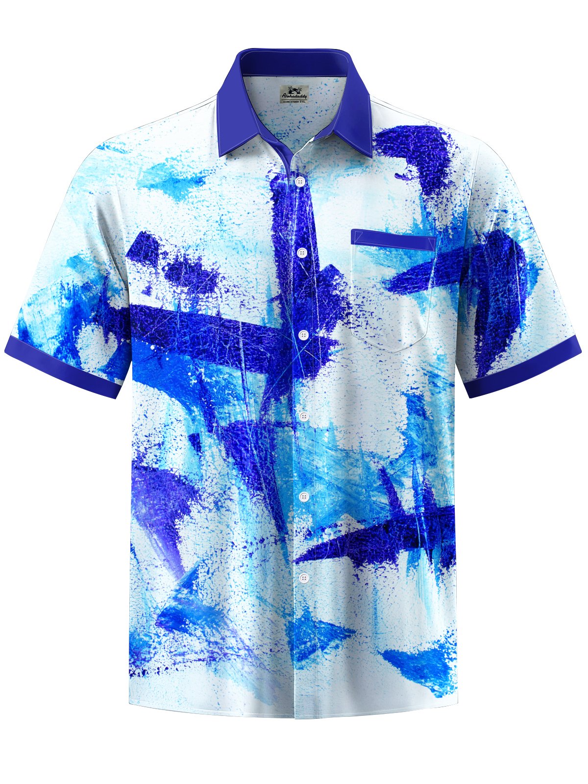 Alohadaddy® Casual Color Block Abstract Art Print Art Chest Pocket Men Short Sleeve Shirt Big & Tall