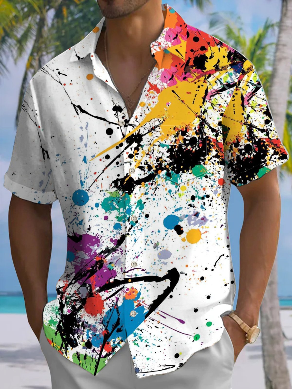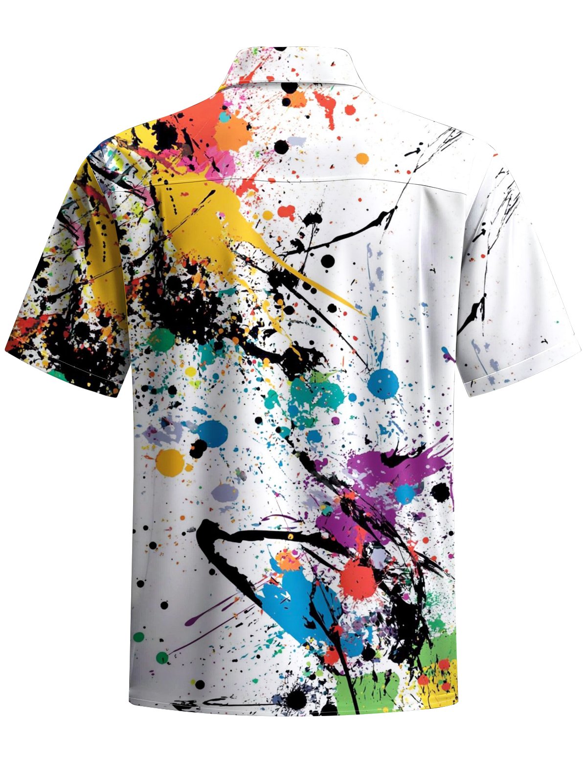 Alohadaddy® Hawaiian acrylic ink abstract print with chest pocket for men's short-sleeved shirts Big & Tall