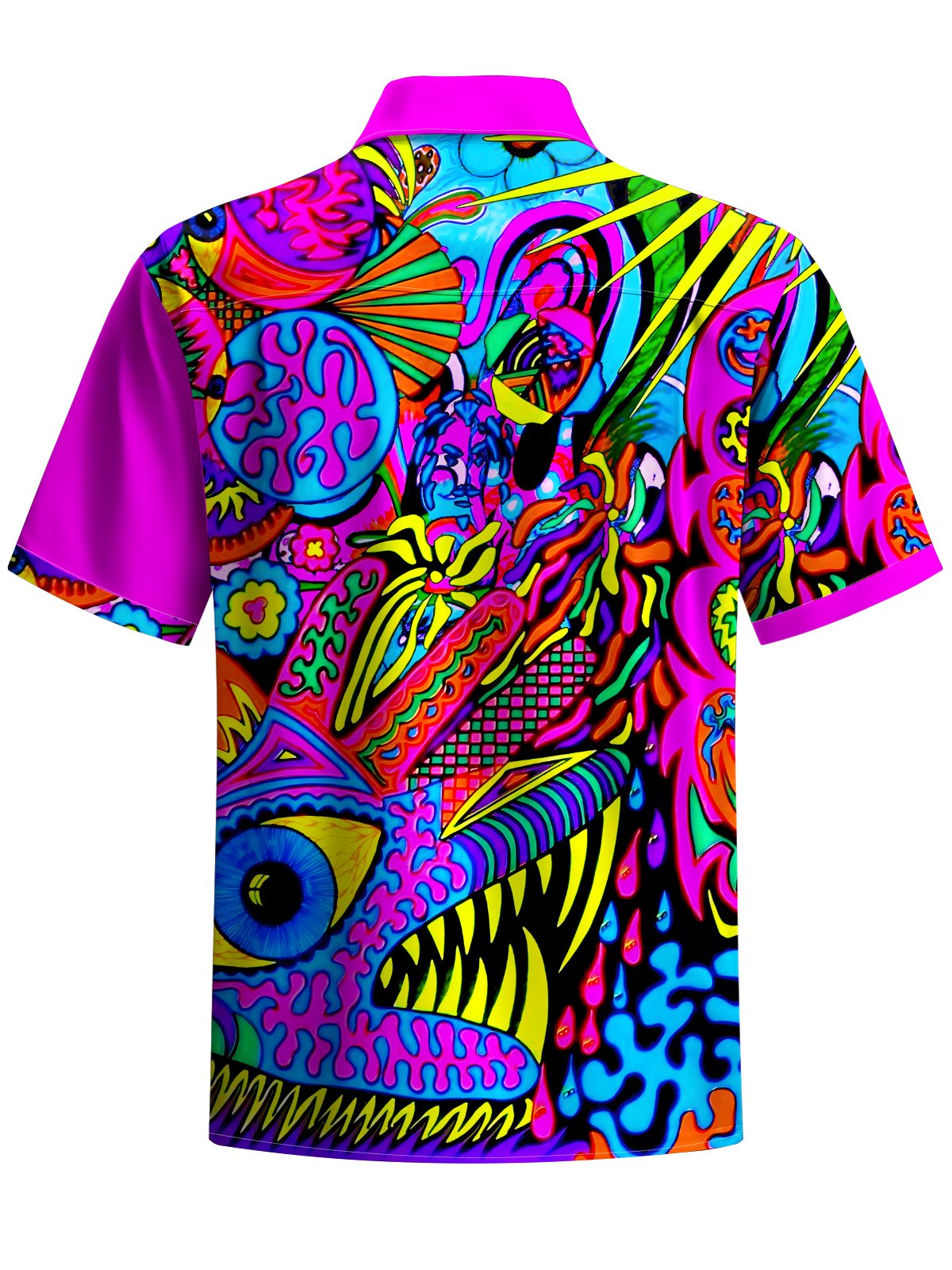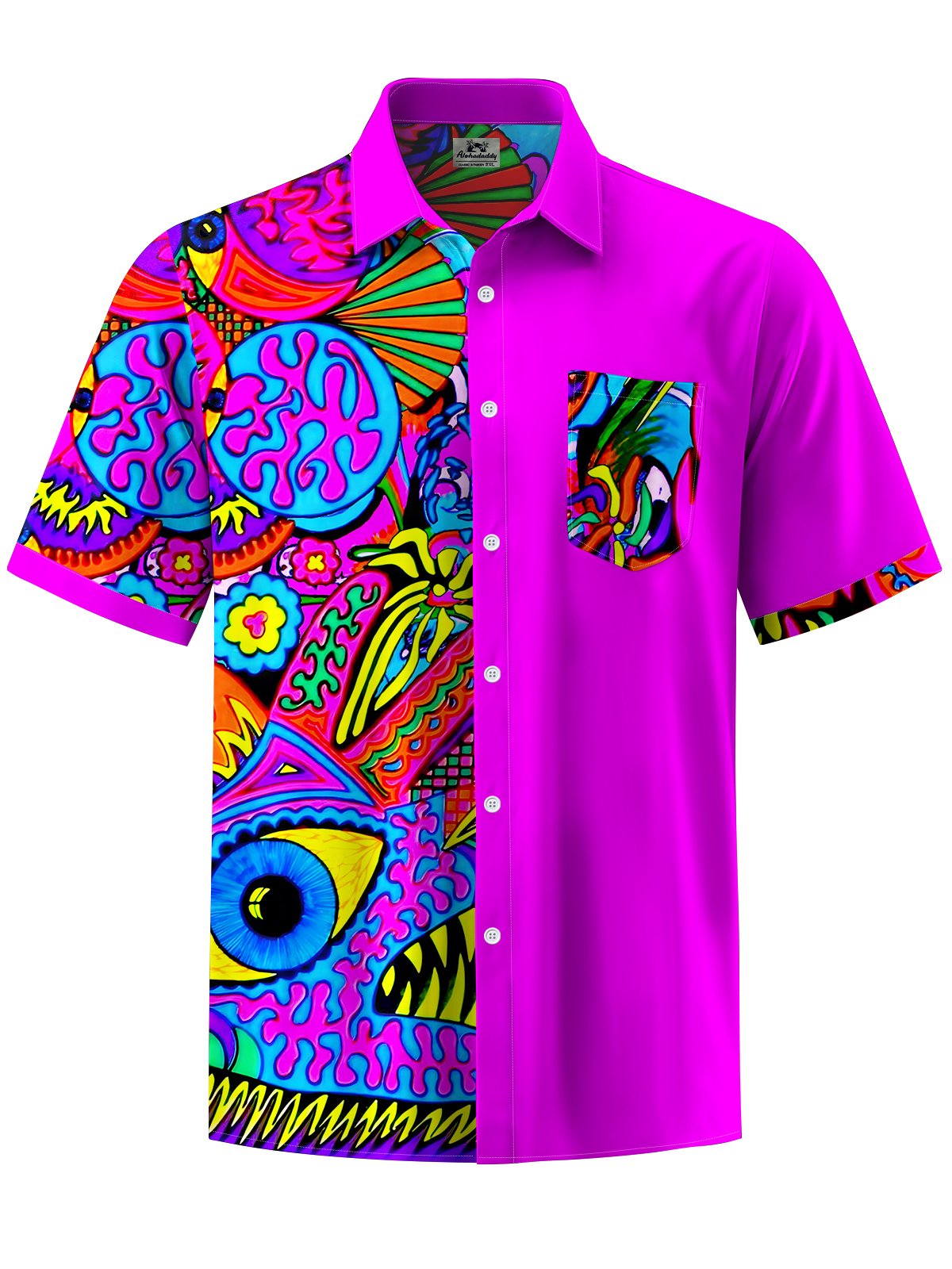 Alohadaddy® Hawaiian Graffiti Contrast Color Print Art Stretch Pocket Men's Short Sleeve Shirt Big & Tall