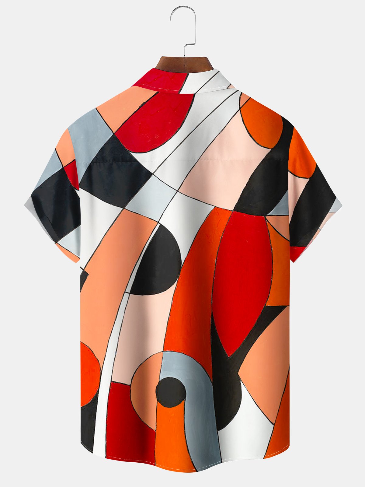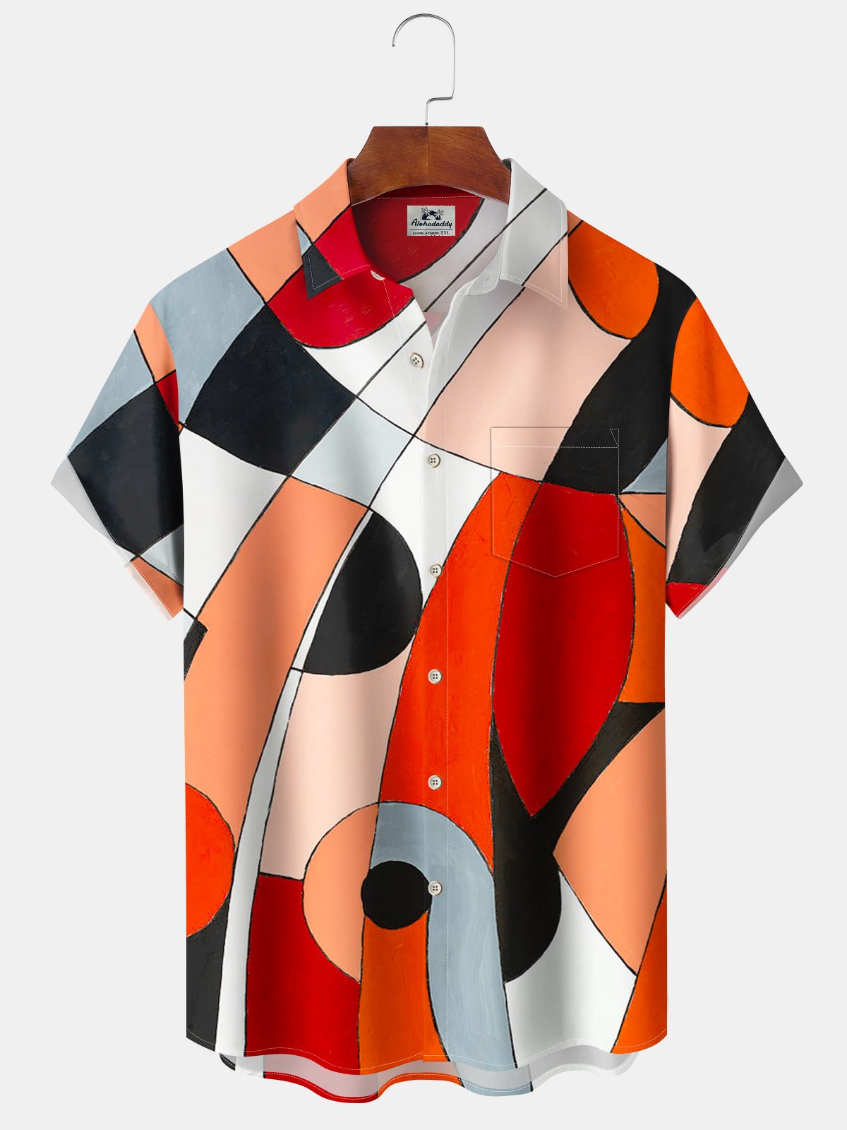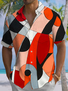 Alohadaddy® Retro Geometric Print Pocket Button Stretch Men's Short Sleeve Shirt Big & Tall