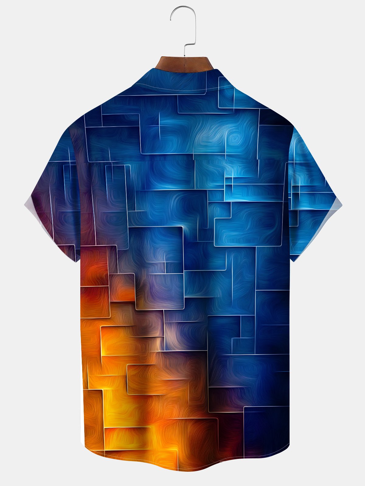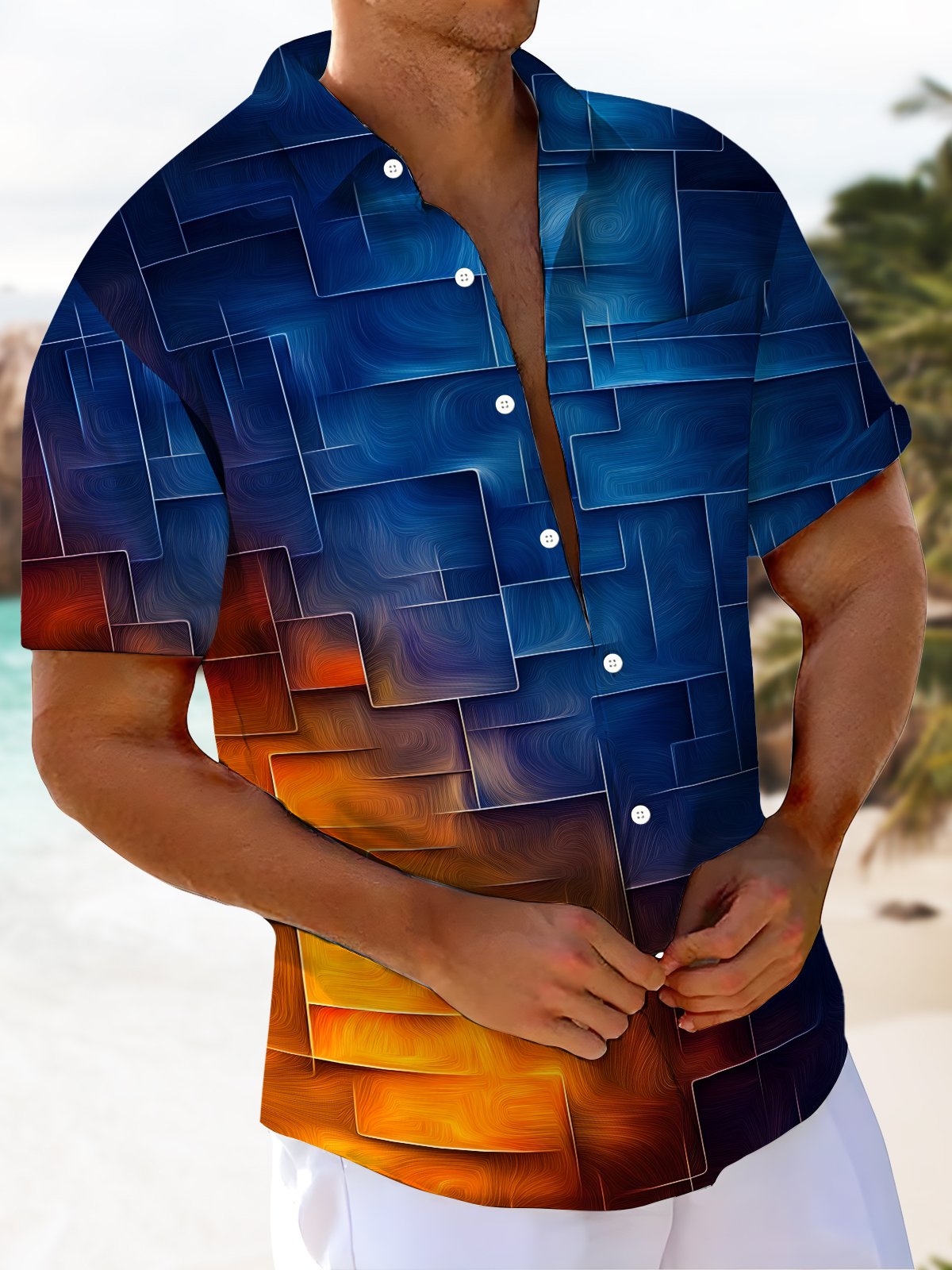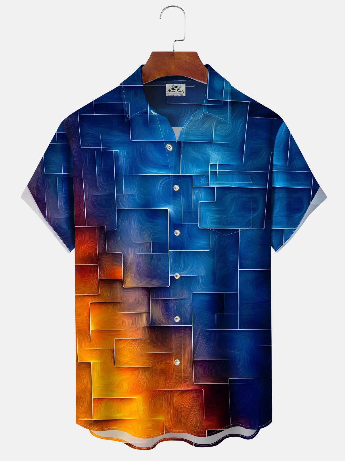 Alohadaddy® Vintage Ombre Geometric Art Print Pockets Wicking Hawaiian Shirt Big & Tall