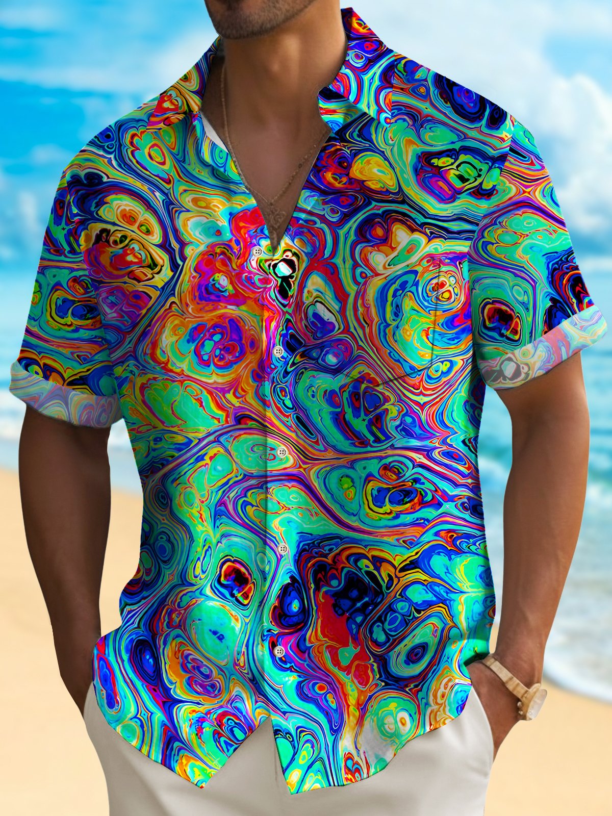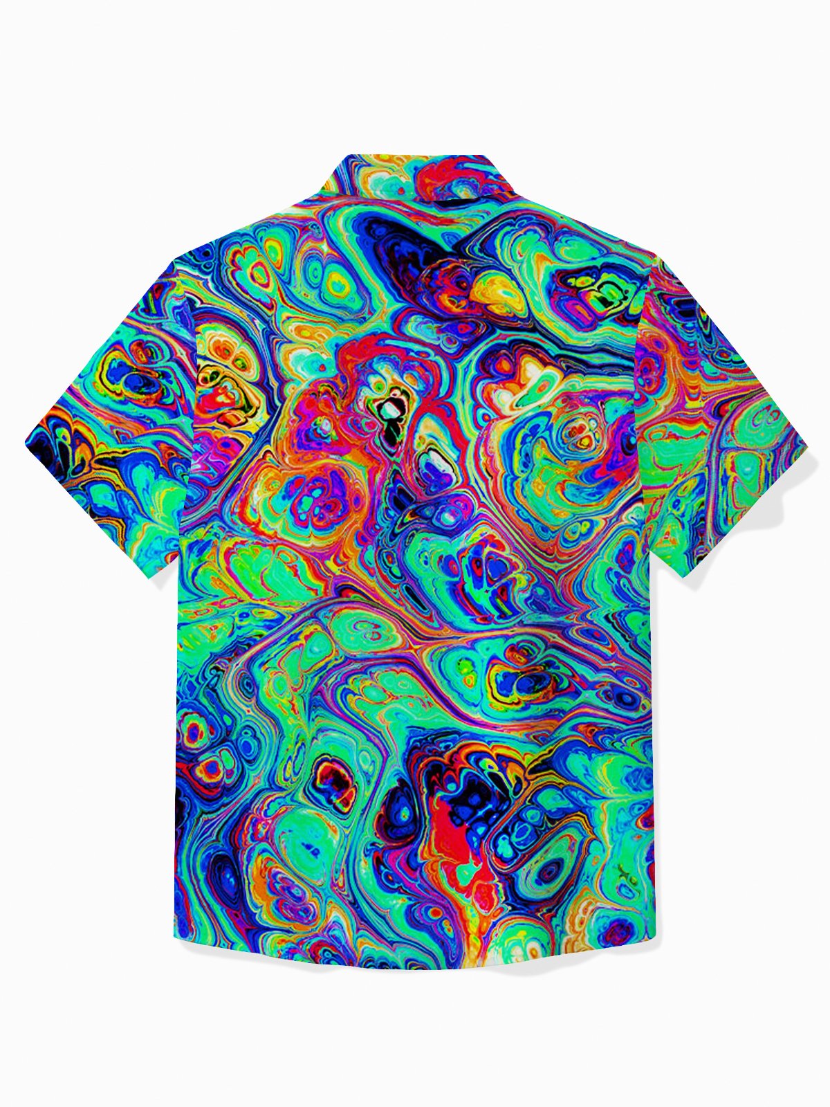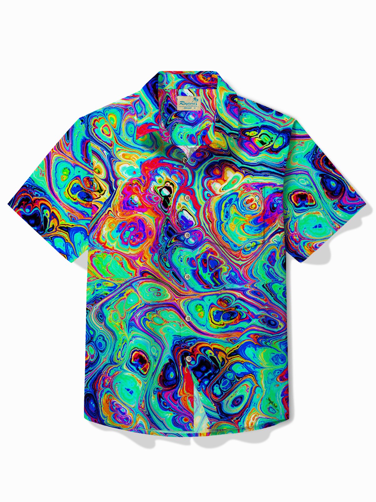 Alohadaddy Vintage 60's Psychedelic Art Men's Hawaiian Shirt Abstract Marble Textured Pocket Camp Shirt Big Tall