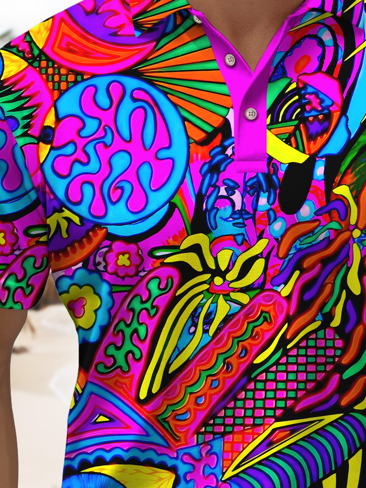Alohadaddy Vintage Abstract Art Texture Print Chest Men's Polo Shirt