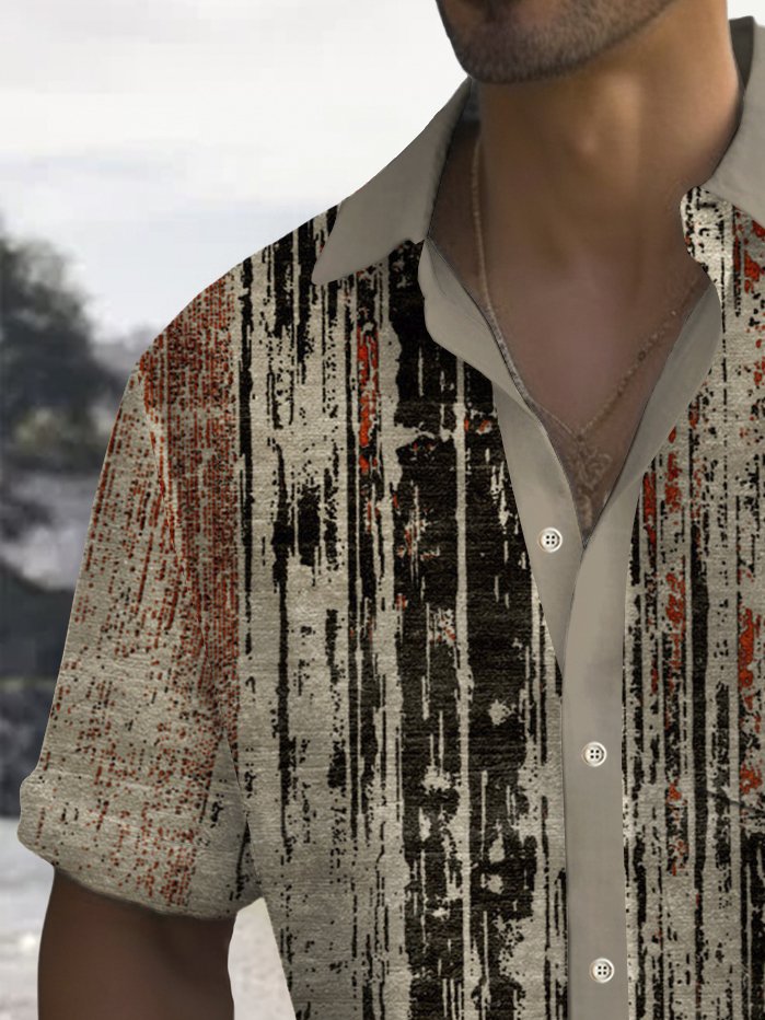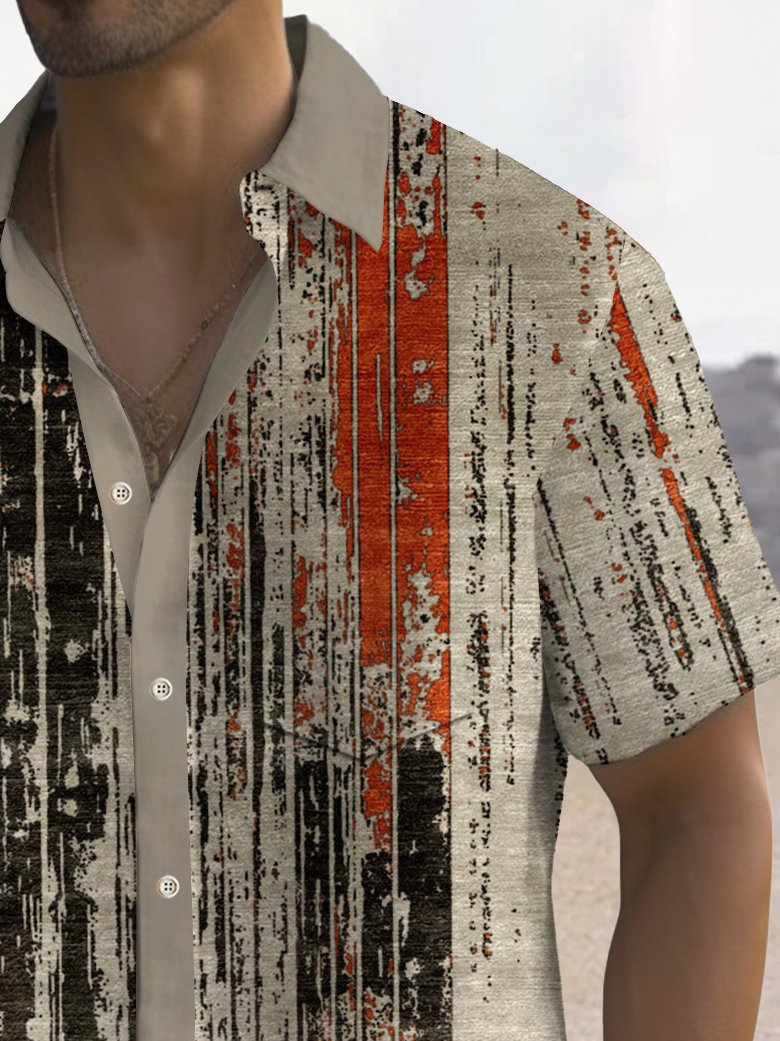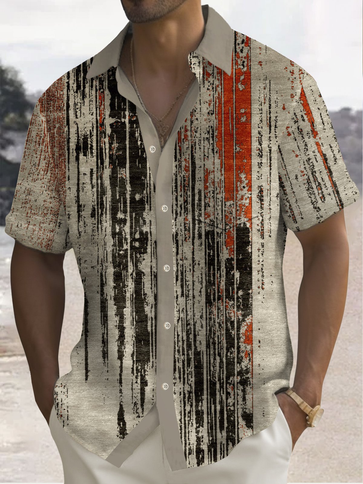 Alohadaddy Vintage Abstract Texture Print Chest Pocket Stretch Shirt Big Tall