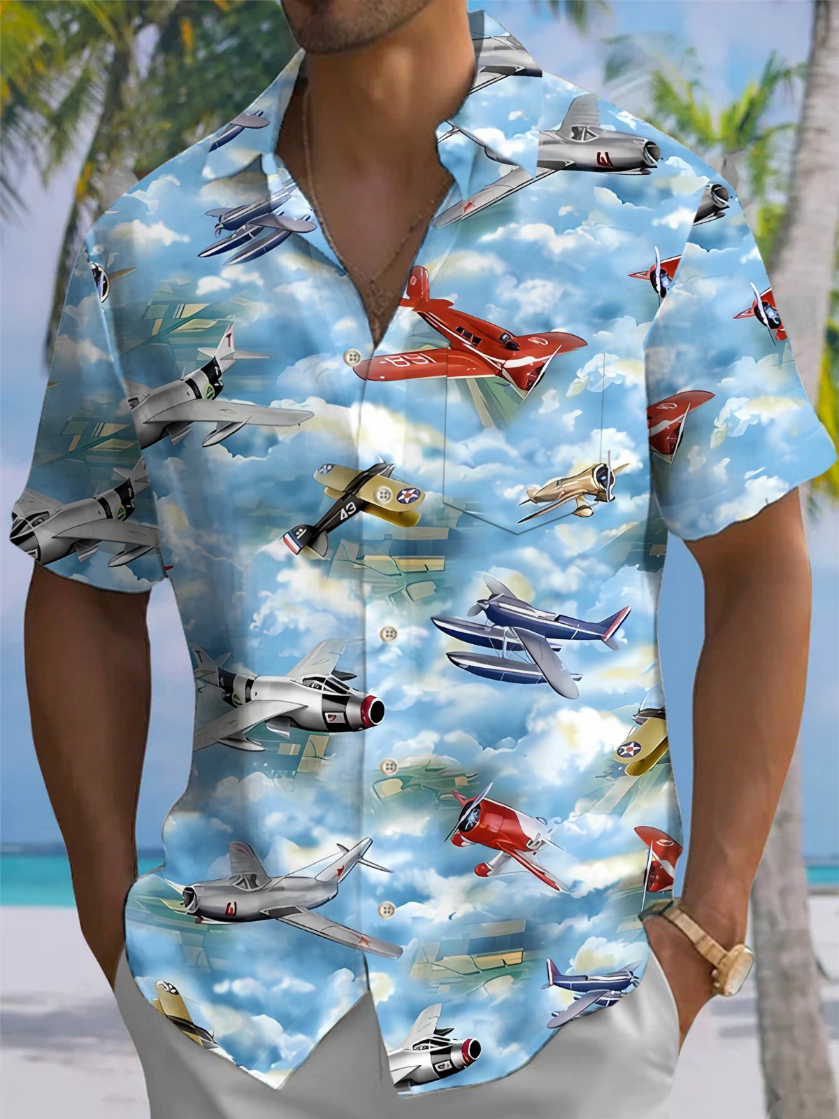 Alohadaddy® Casual Fighter Art Pocket Button Stretch Men's Short Sleeve Shirt Big & Tall