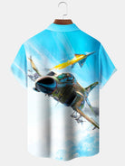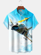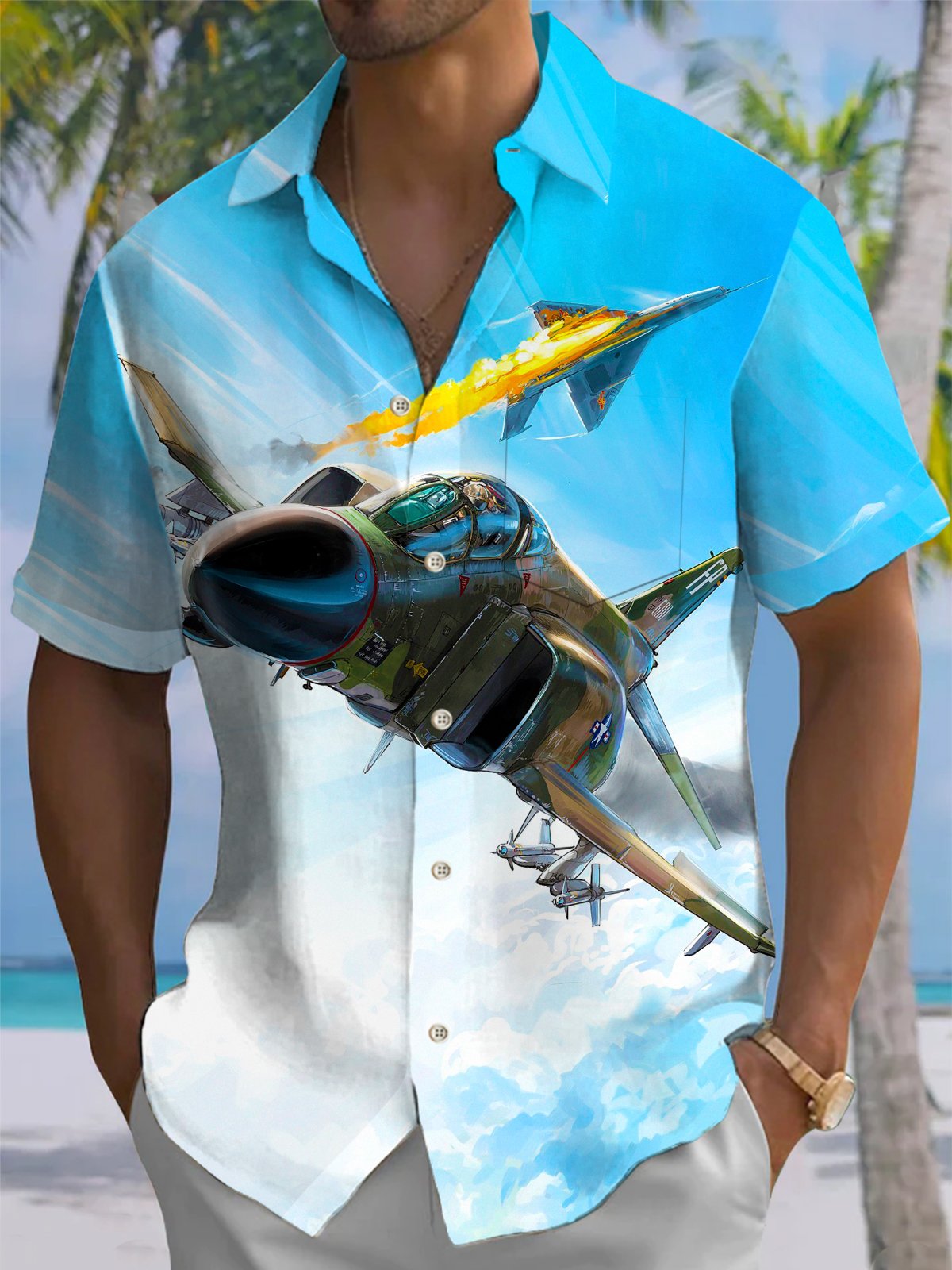 Alohadaddy® Casual Fighter Plane on Fire Printed Pocket Stretch Men's Short Sleeve Shirt Big & Tall