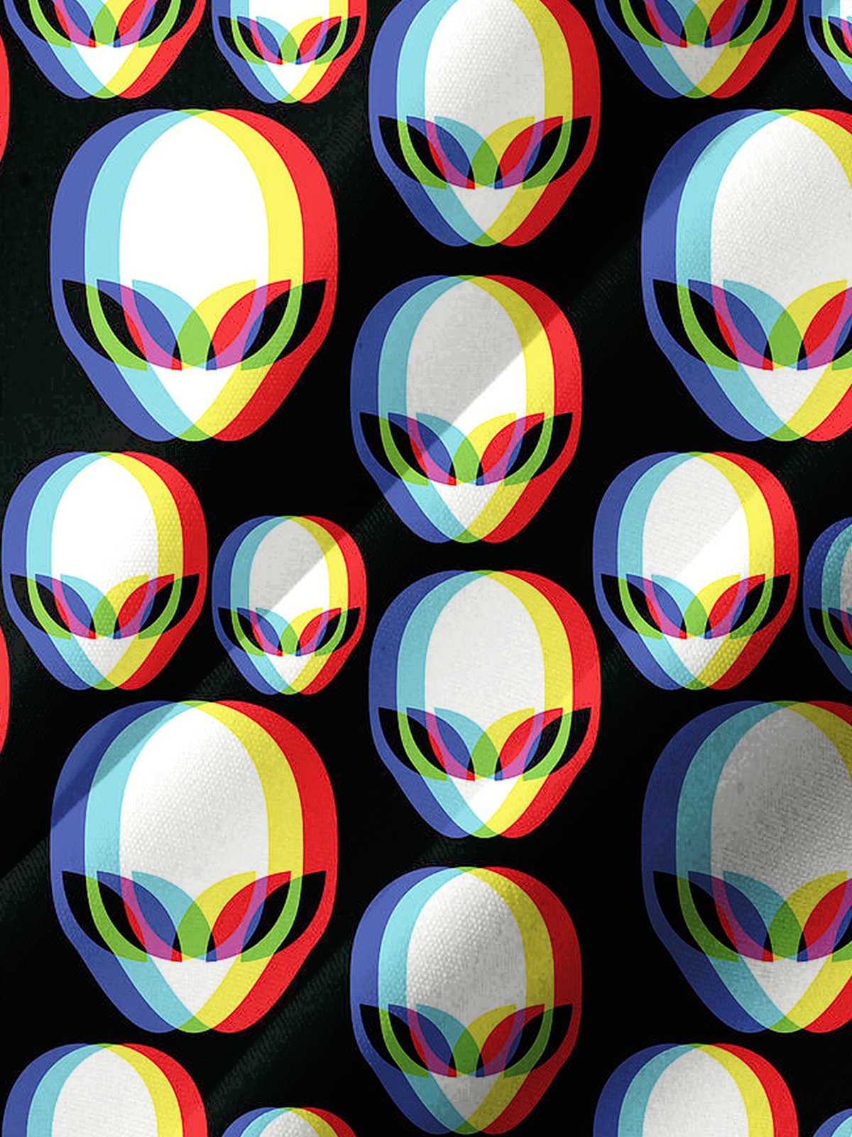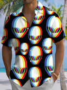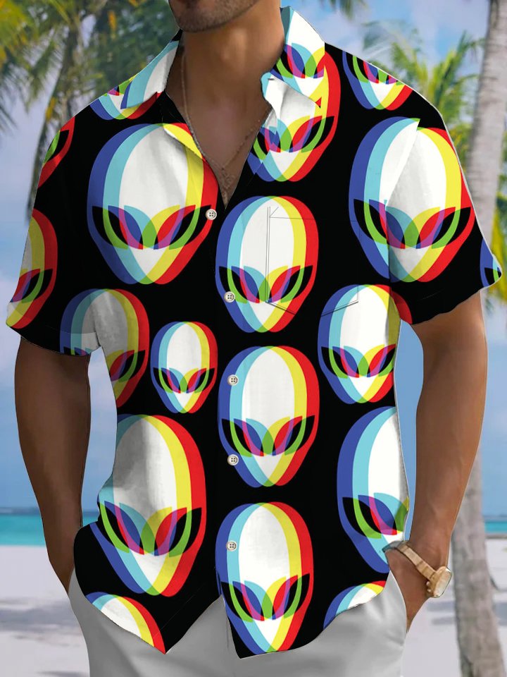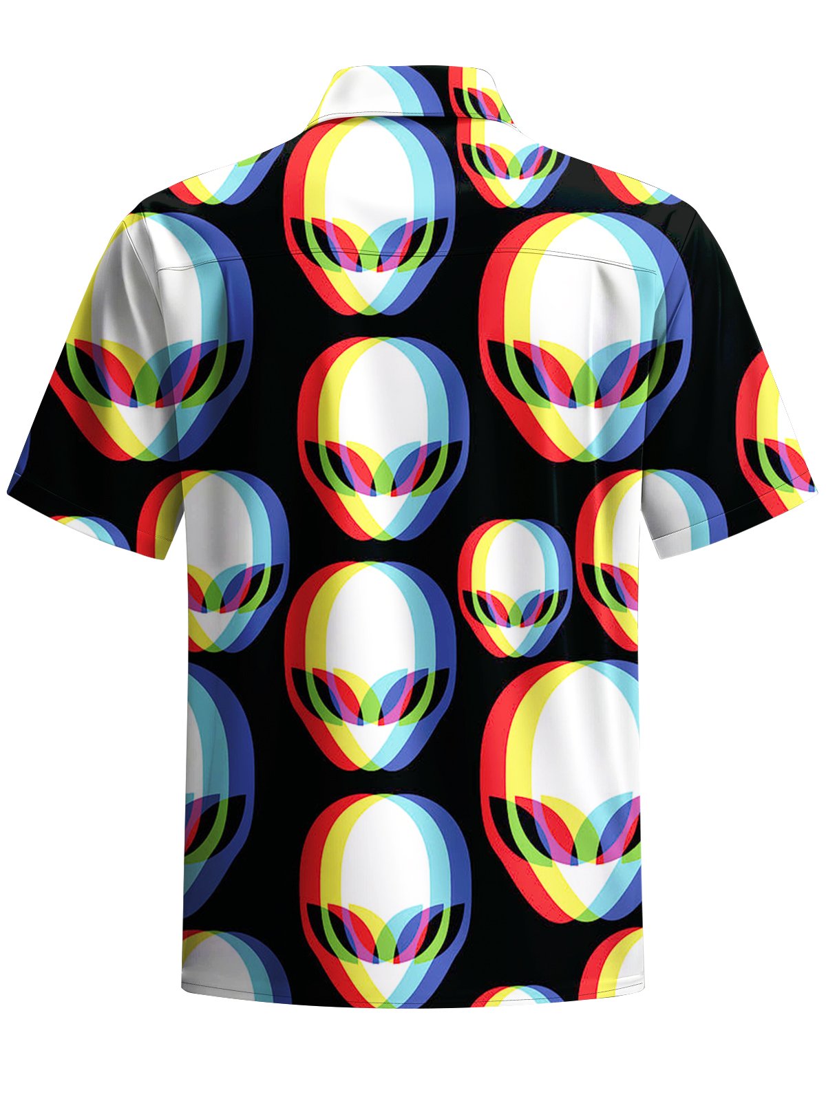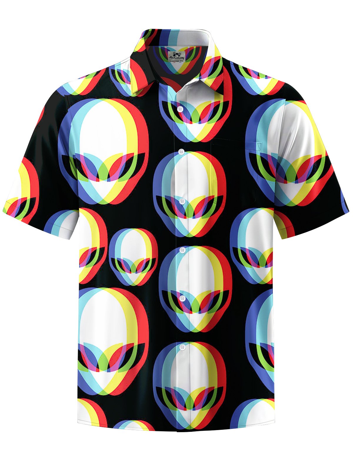 Alohadaddy® Casual 3D Alien Art Print Chest Pocket Men's Short Sleeve Shirt Big & Tall