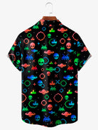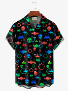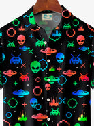 Alohadaddy Retro Alien Cartoon Game 3D Digital Print Men's Button Pocket Short Sleeve Shirt Big & Tall