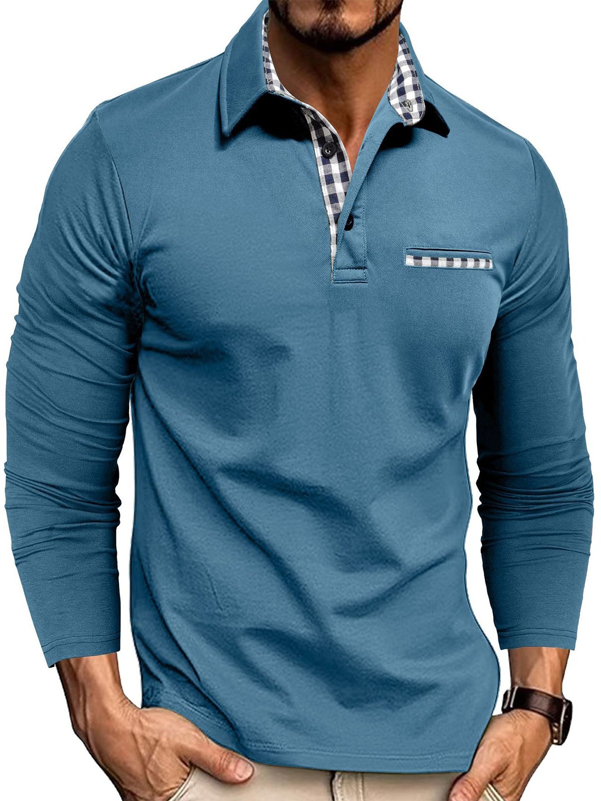 Alohadaddy® 2025 Men's Casual Fashion Shirt Popular Lapel Long Sleeve Colorblock Polo