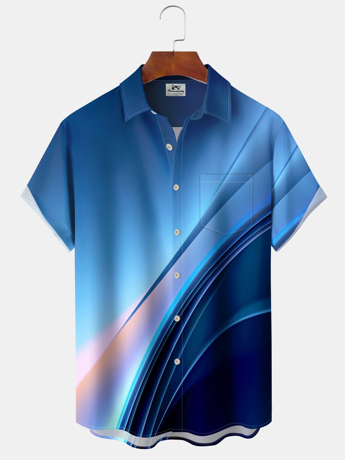Alohadaddy® Casual Abstract Print Pocket Elastic Button Men's Short Sleeve Shirt Big & Tall