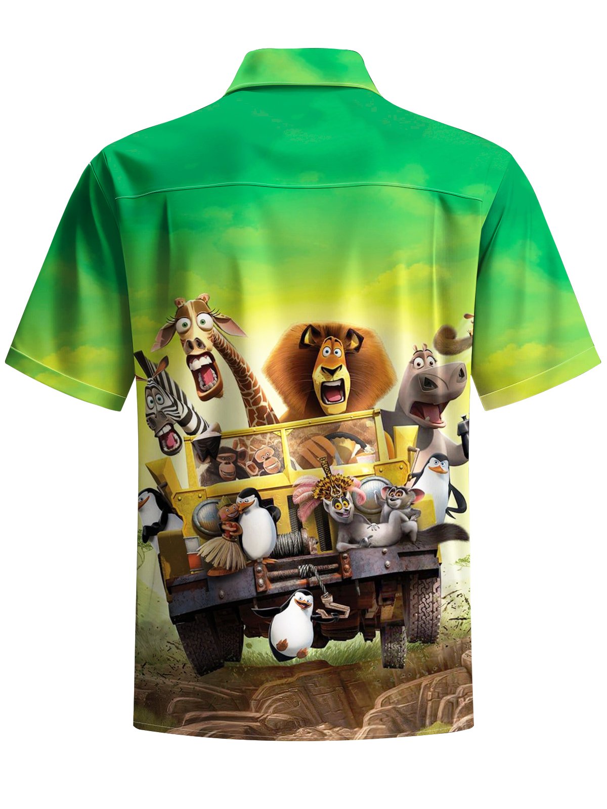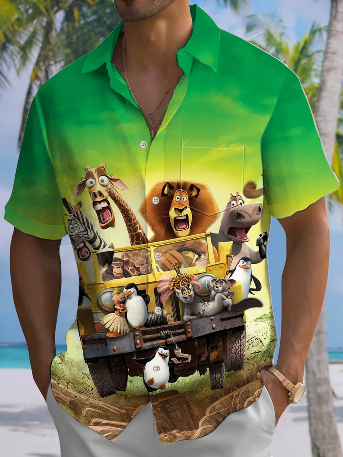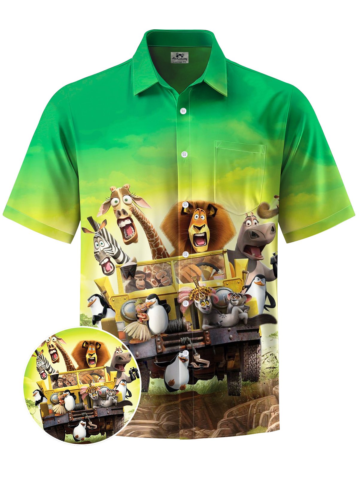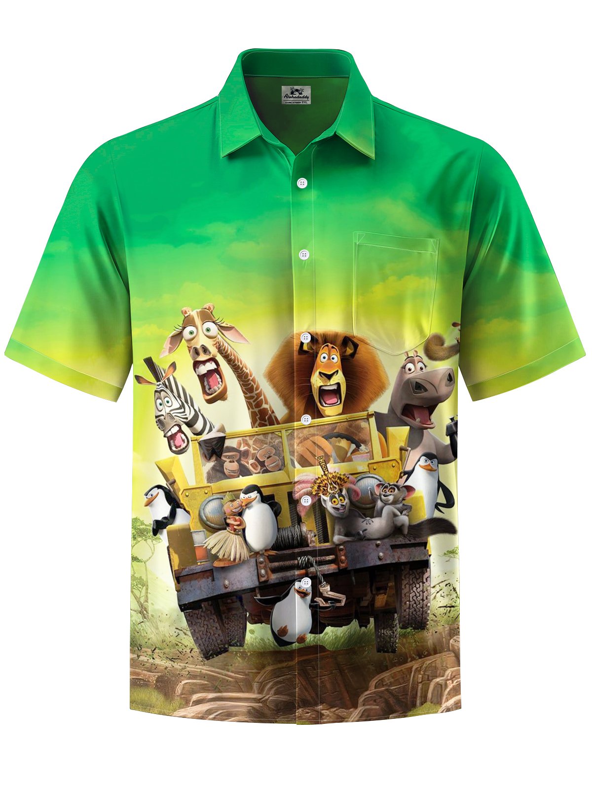 Alohadaddy® Casual Cartoon Animals Gradient Color Print Art Chest Pocket Men's Short Sleeve Shirt Big & Tall