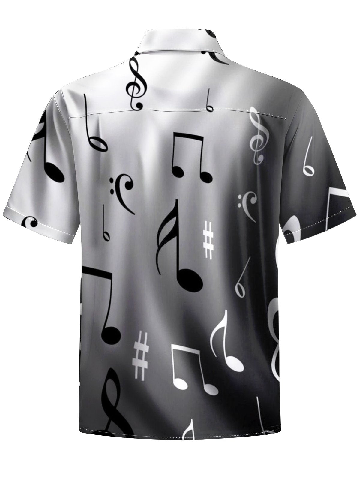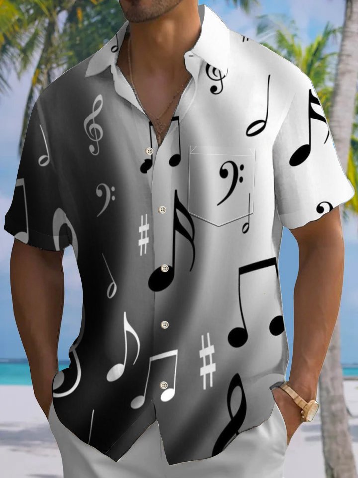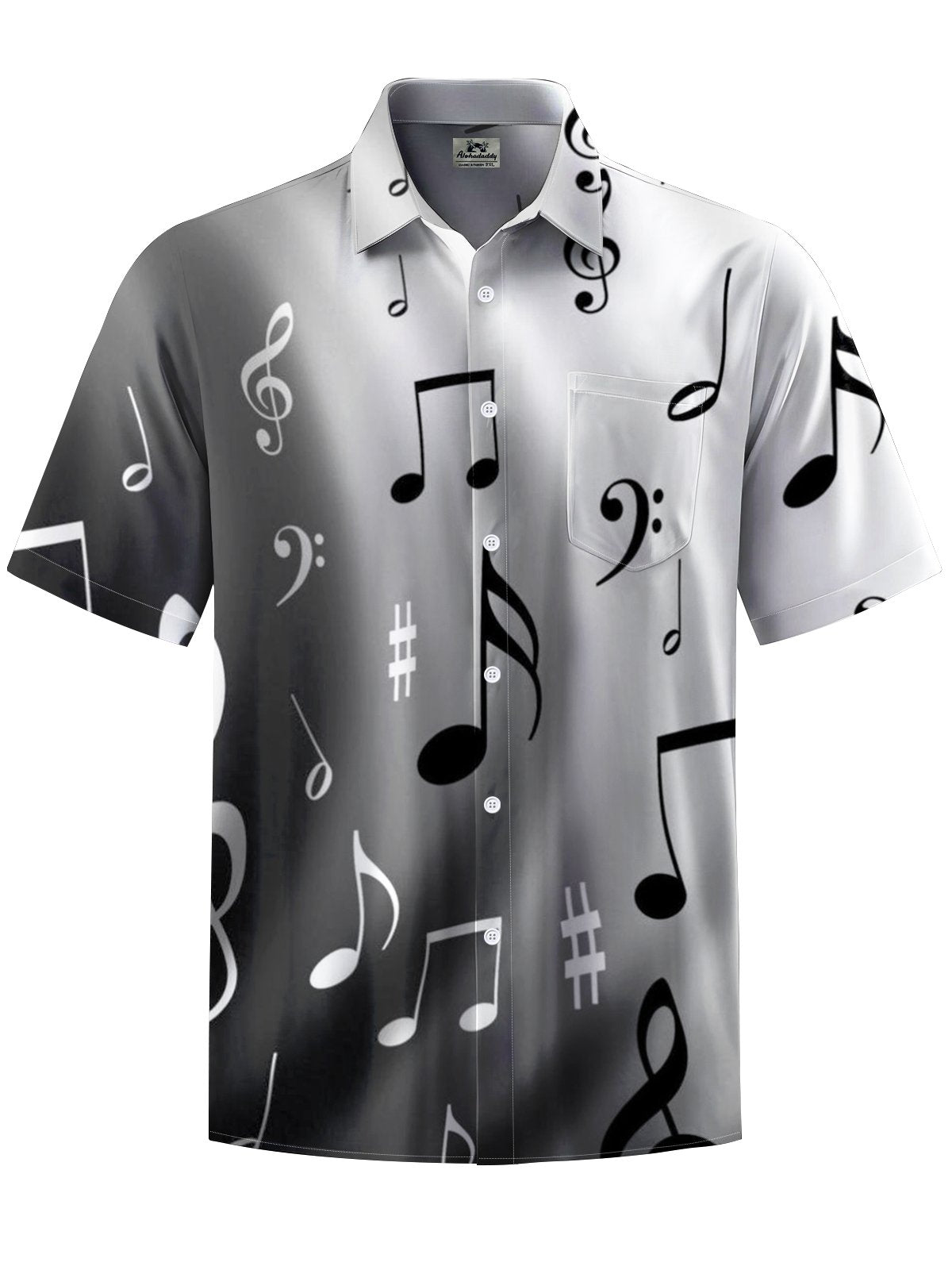 Alohadaddy® Casual Music Notes Gradient Color Print Art Chest Pocket Men's Short Sleeve Shirt Big & Tall