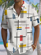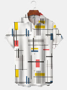 Alohadaddy® Casual Striped Geometric Print Pockets Elastic Button Men's Short Sleeve Shirt Big & Tall