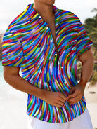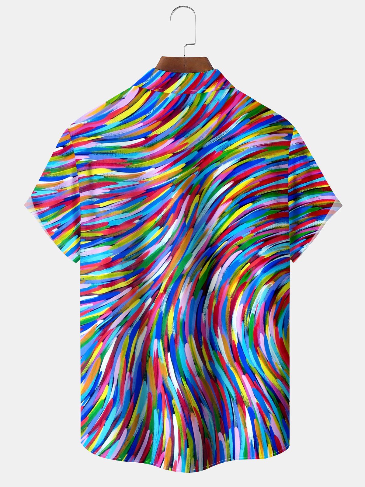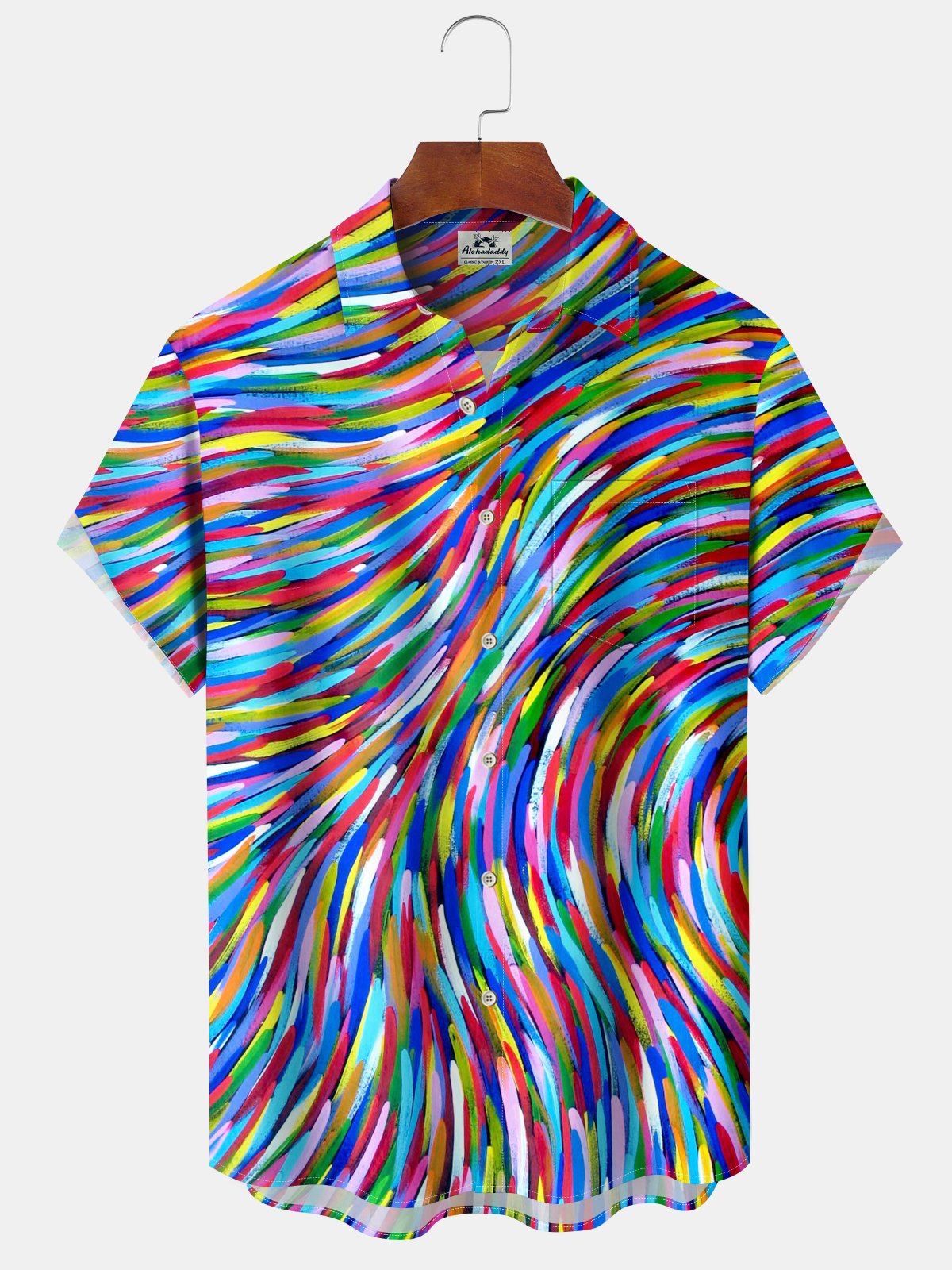 Alohadaddy® Casual Stripes Abstract Print Pockets Elastic Button Men's Short Sleeve Shirt Big & Tall