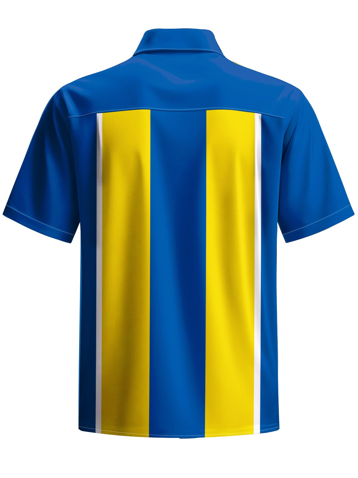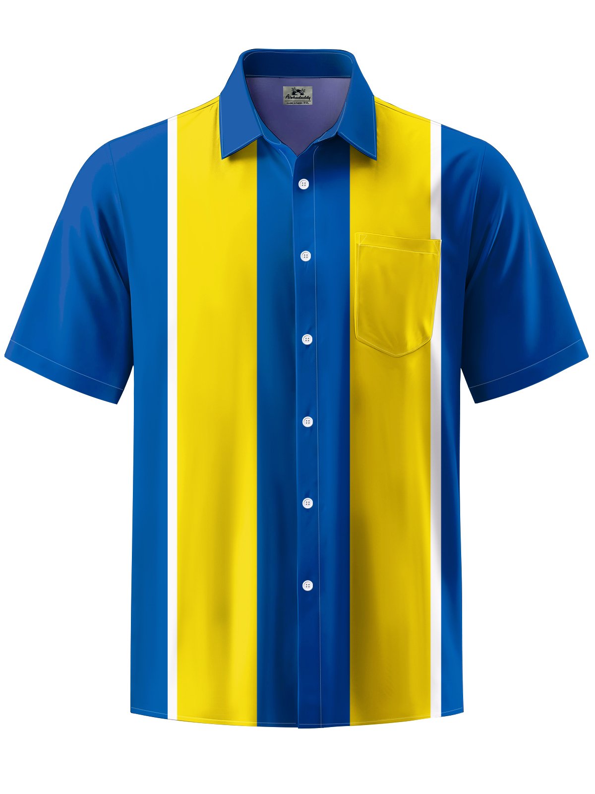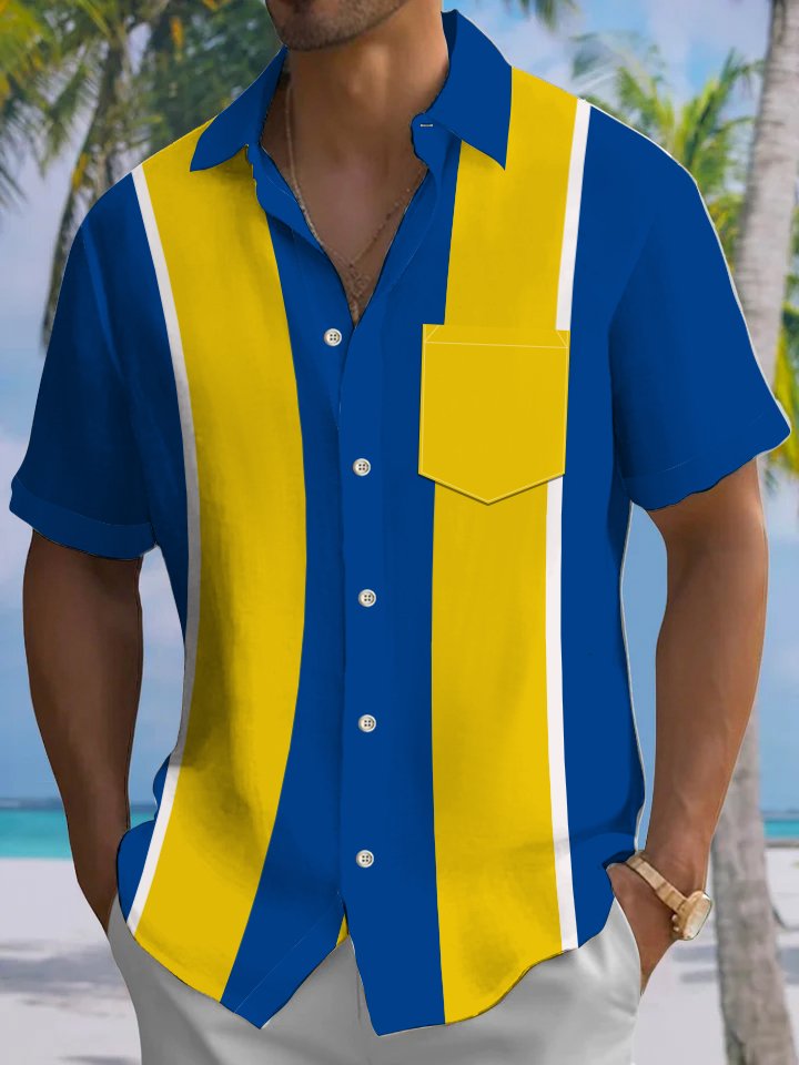 Alohadaddy® Casual Stripes Contrast Color Art Print Chest Pocket Men's Short Sleeve Shirt Big & Tall