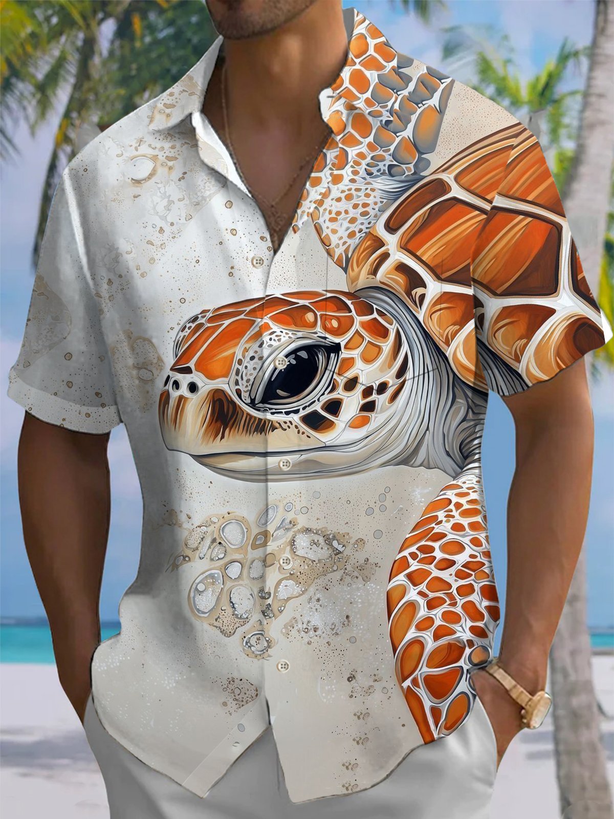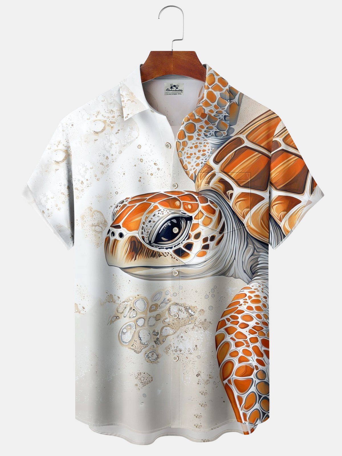 Alohadaddy® Casual Turtle Print Pocket Elastic Button Men's Short Sleeve Shirt Big & Tall