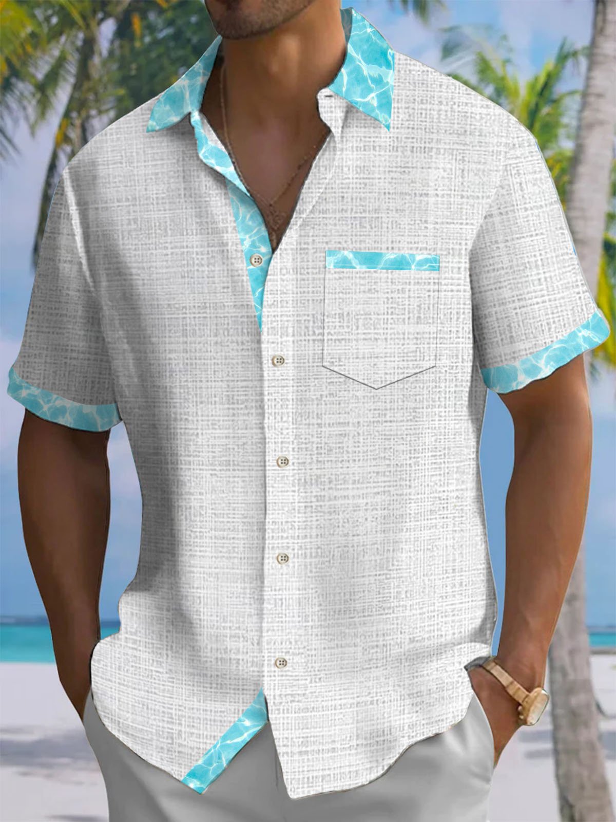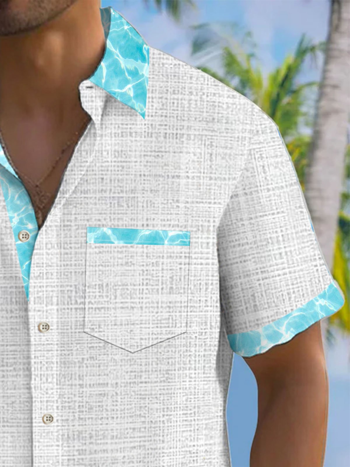 Alohadaddy® Casual Watercolor Contrast Art Print Moisture Wicking Men's Short Sleeve Shirt Big & Tall