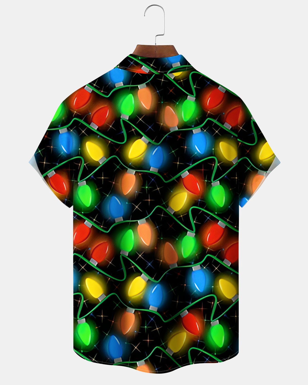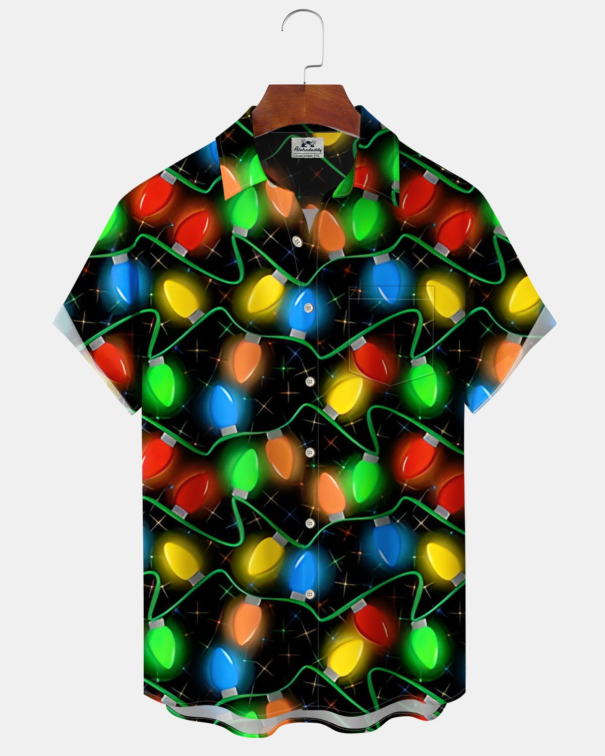 Alohadaddy® Holiday Christmas Lights Print Artistic Stretch Button Pocket Men's Short Sleeve Shirt Big & Tall