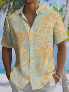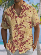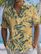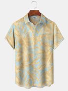Alohadaddy® Men's Casual Leaf Silhouette Printed Pockets Elastic Button Short Sleeve Shirt Big & Tall