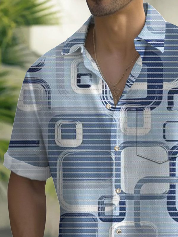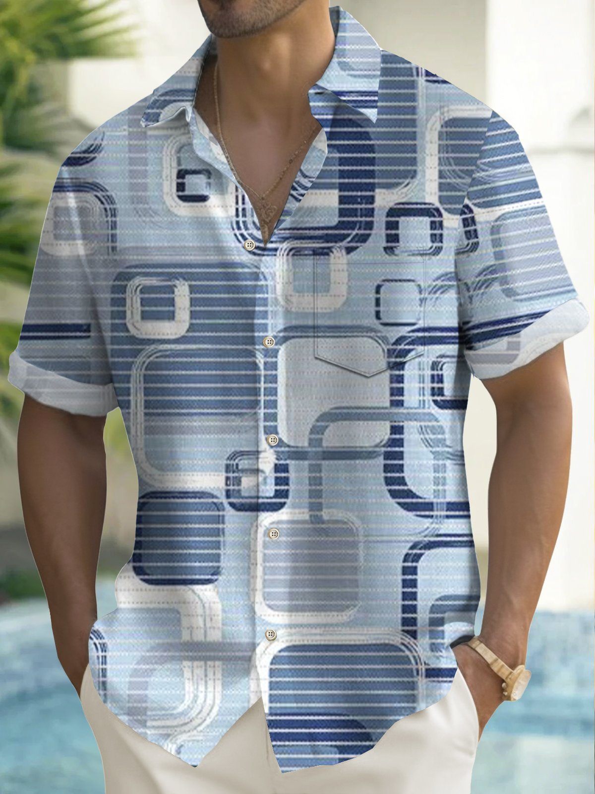 Alohadaddy® Men's Casual Striped Color Block Print Lapel Pocket Short Sleeve Shirt Big & Tall