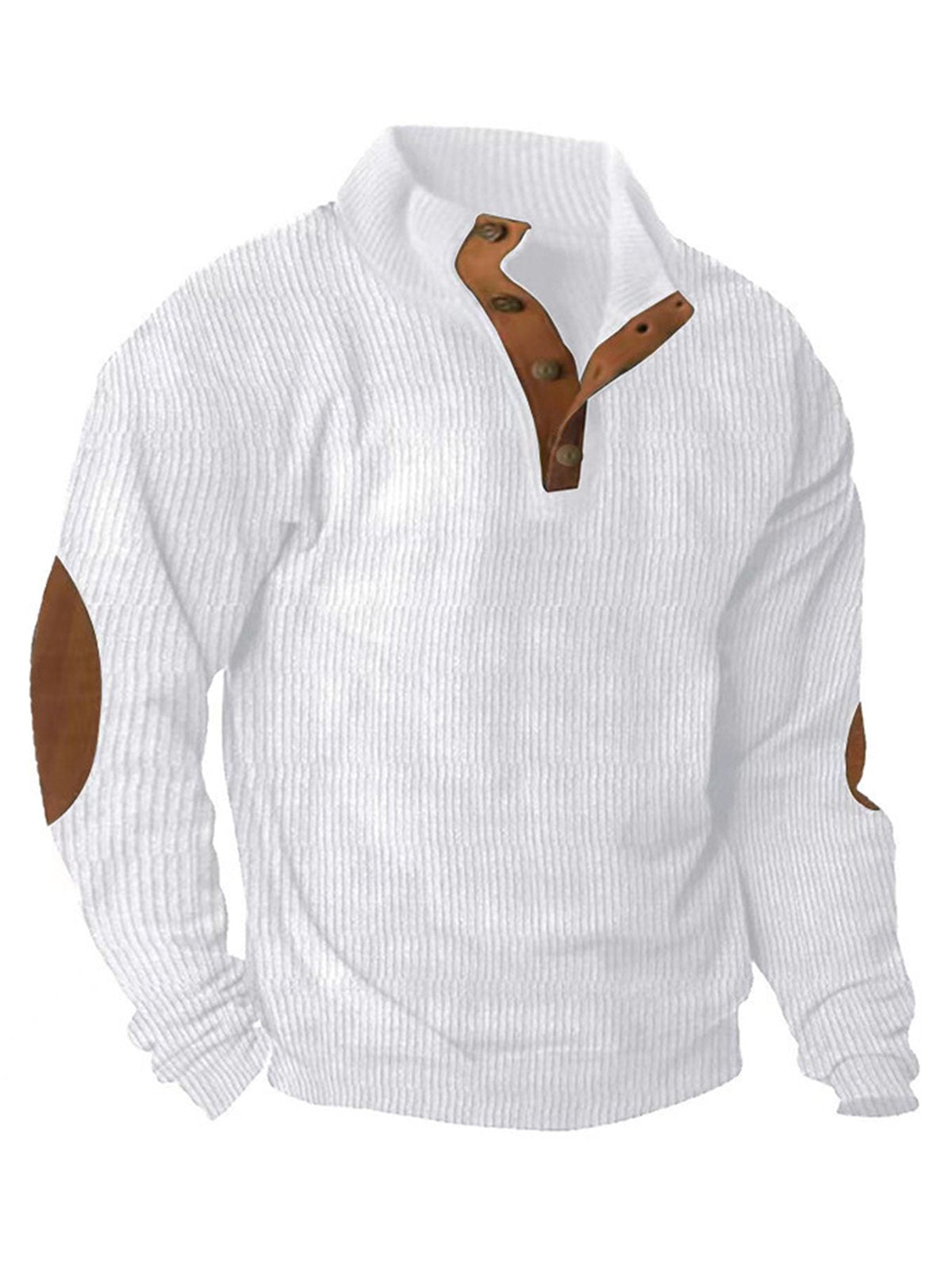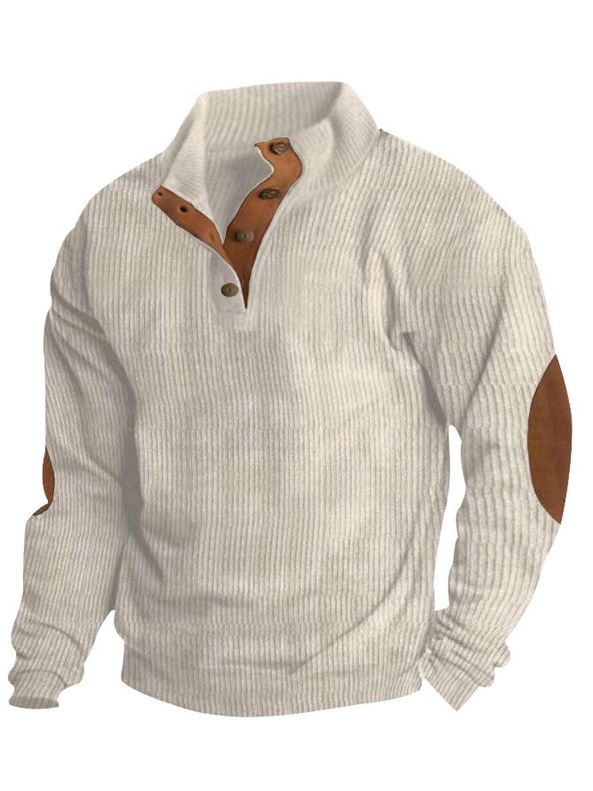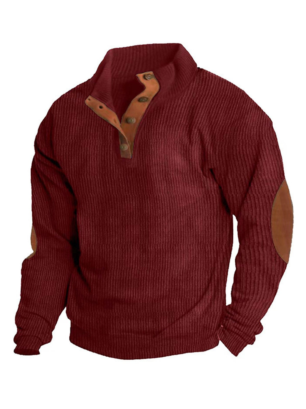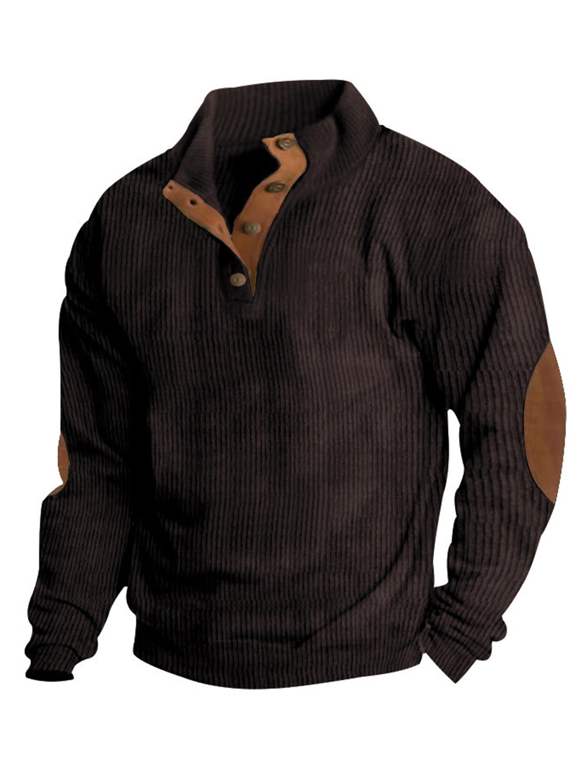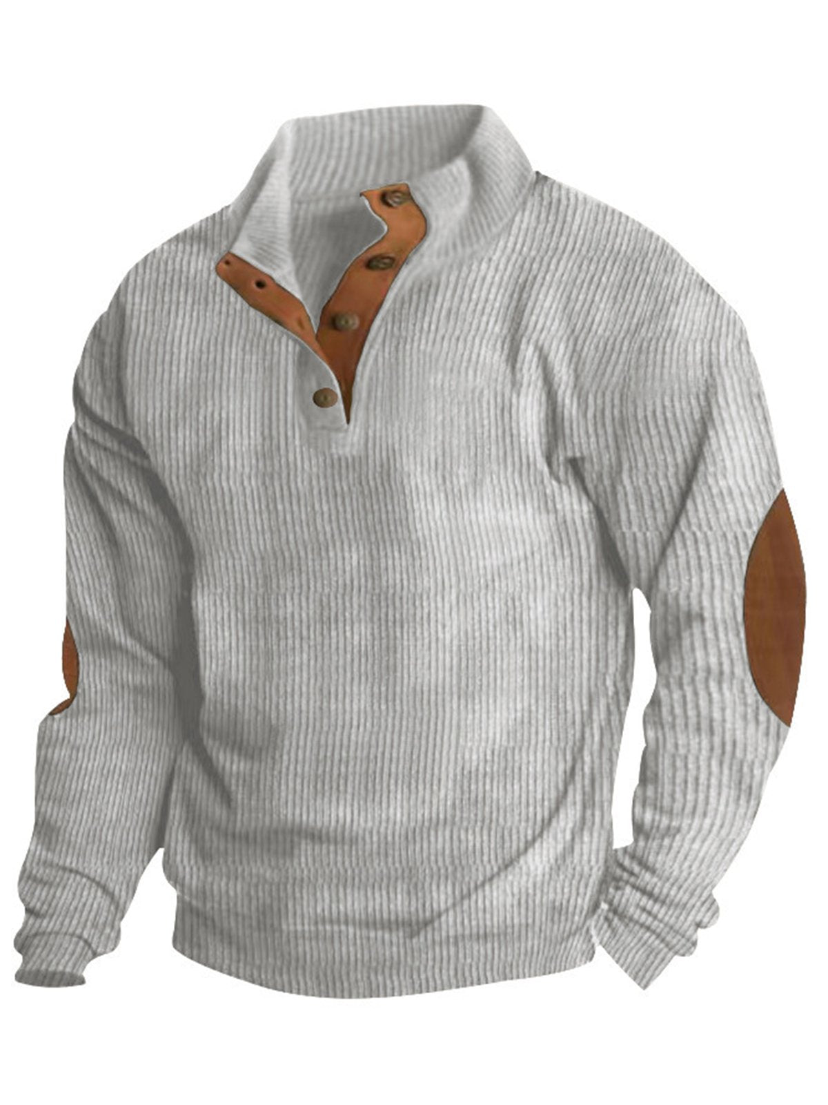 Alohadaddy® Men's Corduroy Solid Color Splicing Long Sleeve Shirt Pullover Retro Casual Large Size Men's Jacket