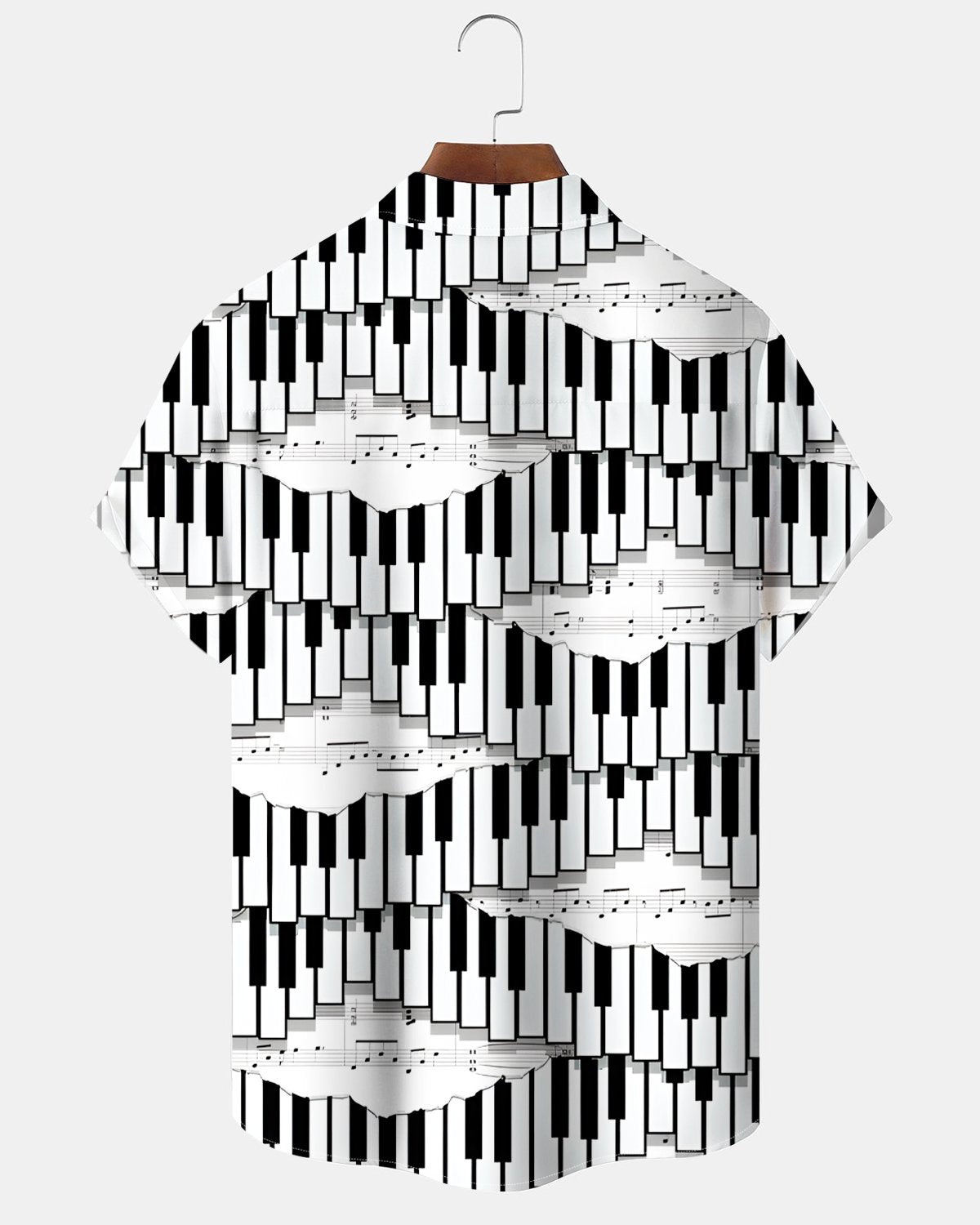 Alohadaddy® Retro 3D Musical Piano Key Notes Men's Short-Sleeve Shirt