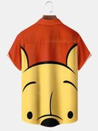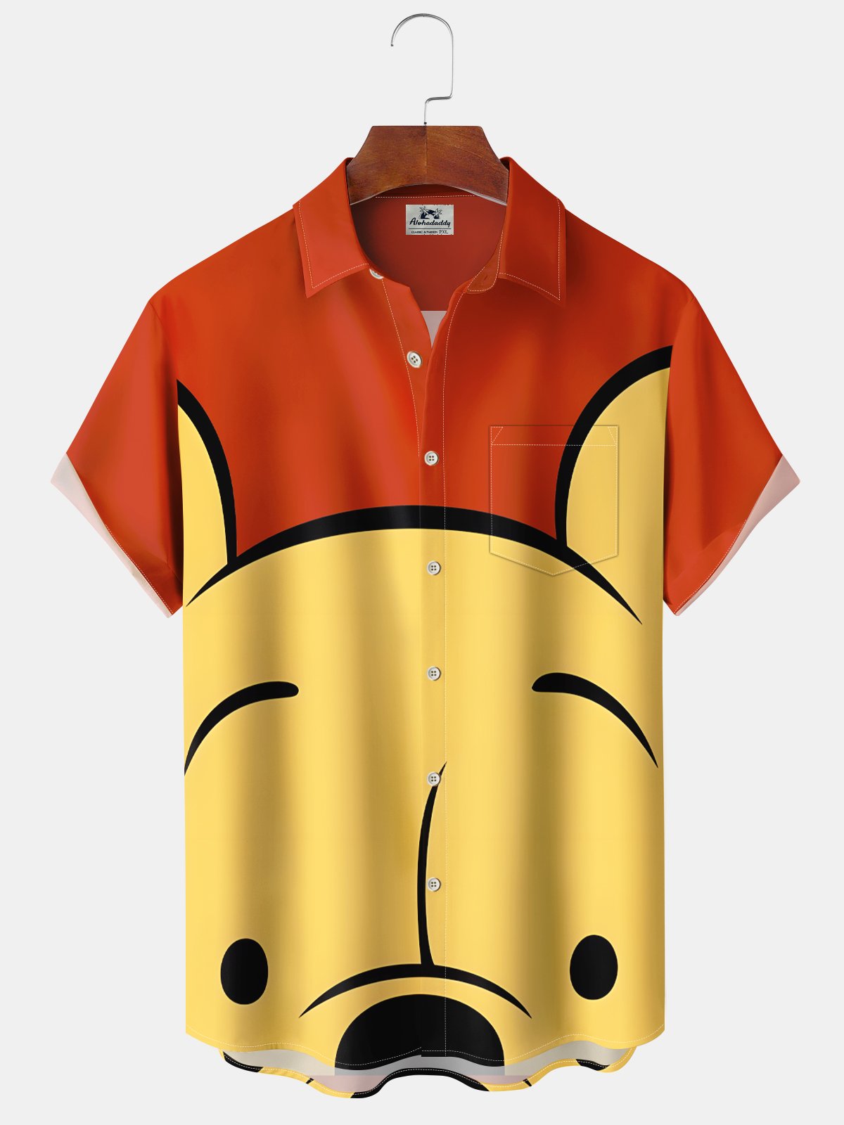 Alohadaddy® Retro Cartoon Bear Colorblock Men's Pocket Hawaiian Short Sleeve Shirt