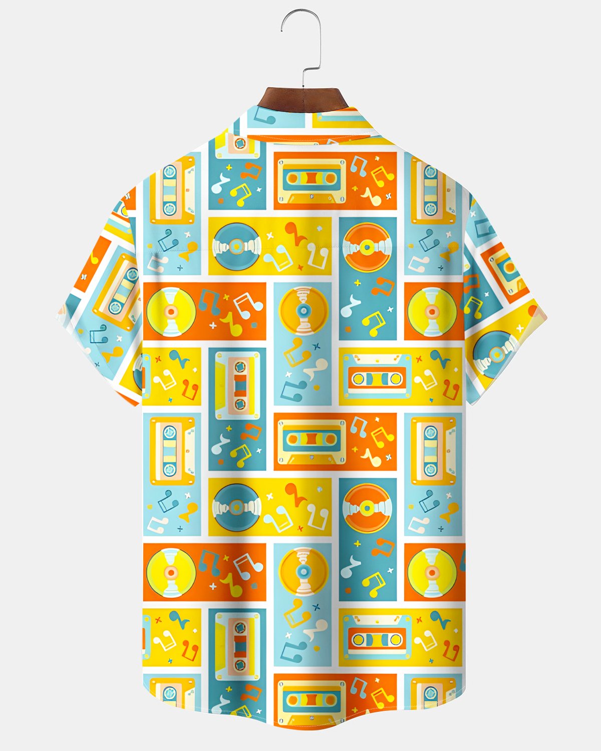 Alohadaddy® Retro Music Geometric Tape Men's Short-Sleeve Shirt
