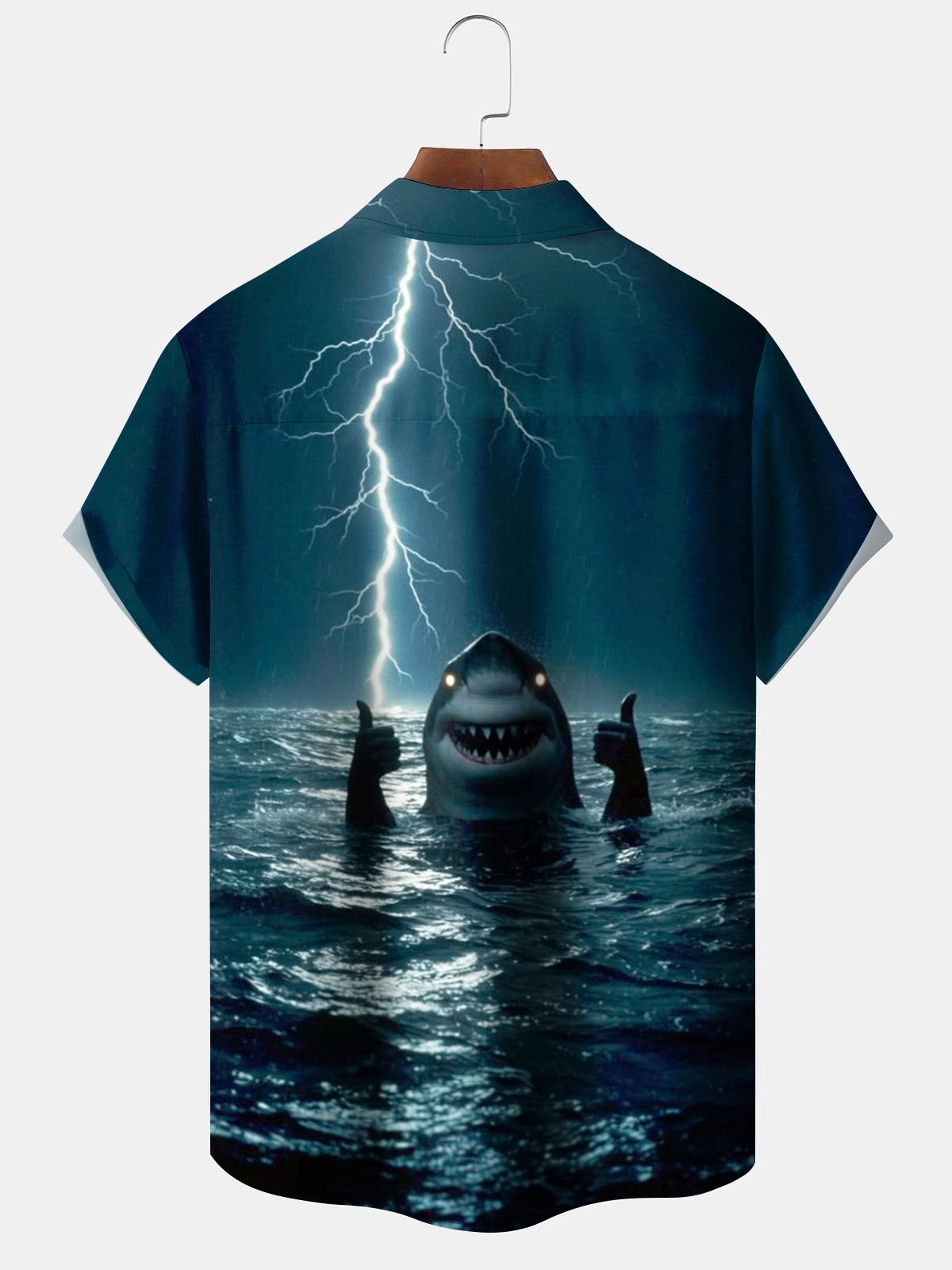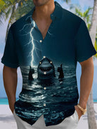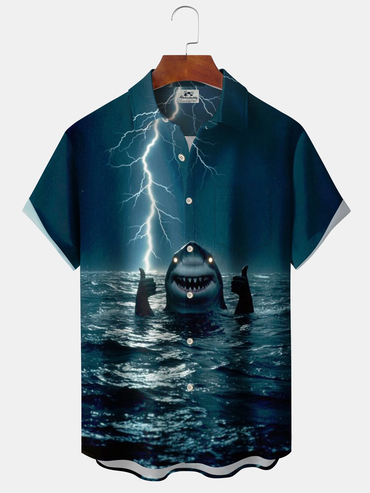 Alohadaddy® Retro Shark Print Pocket Elastic Button Men's Short Sleeve Shirt Big & Tall