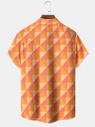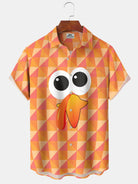 Alohadaddy® Thanksgiving Turkey Geometric Print Pocket Elastic Button Men's Short Sleeve Shirt Big & Tall