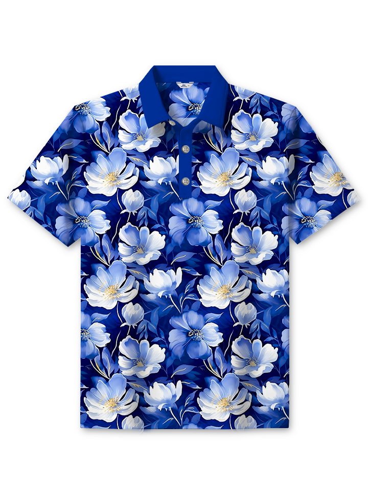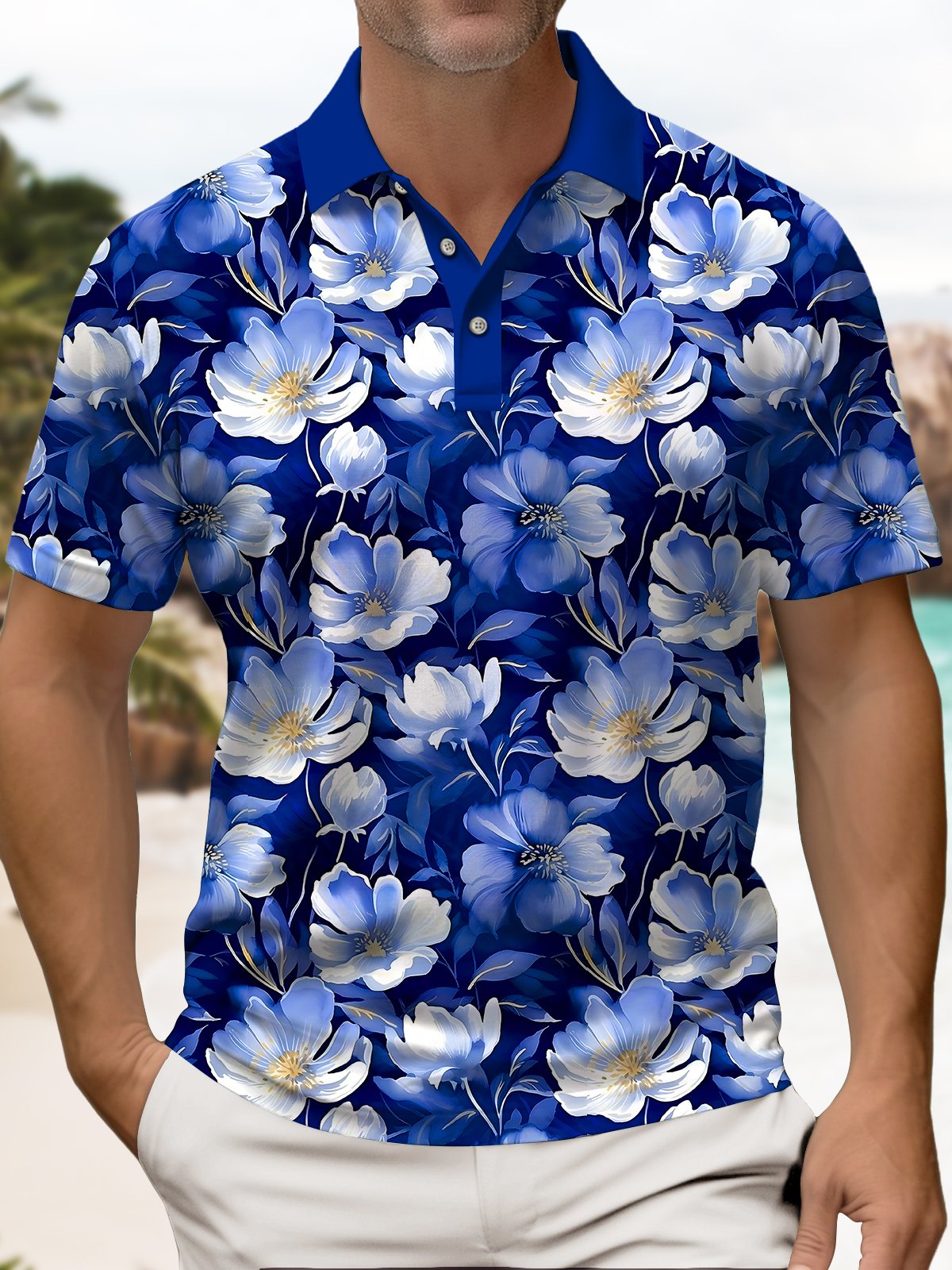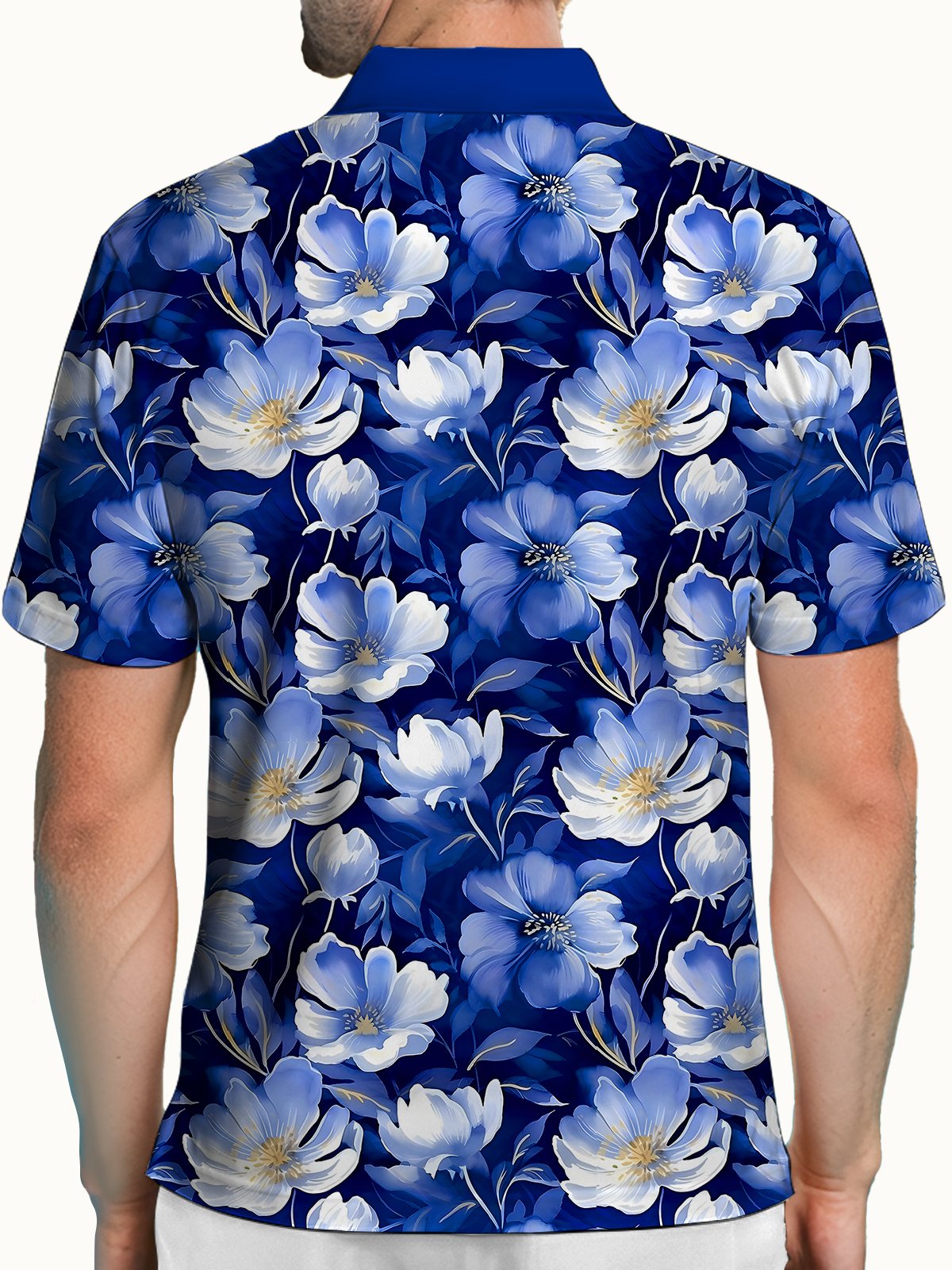 Alohadaddy® Casual Floral Art Print Chest Stretch Oversized Hawaiian Polo Shirt