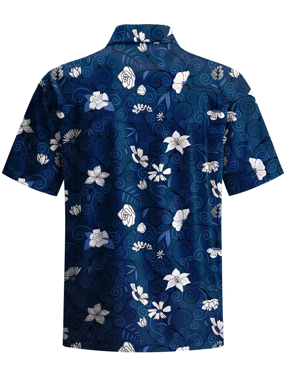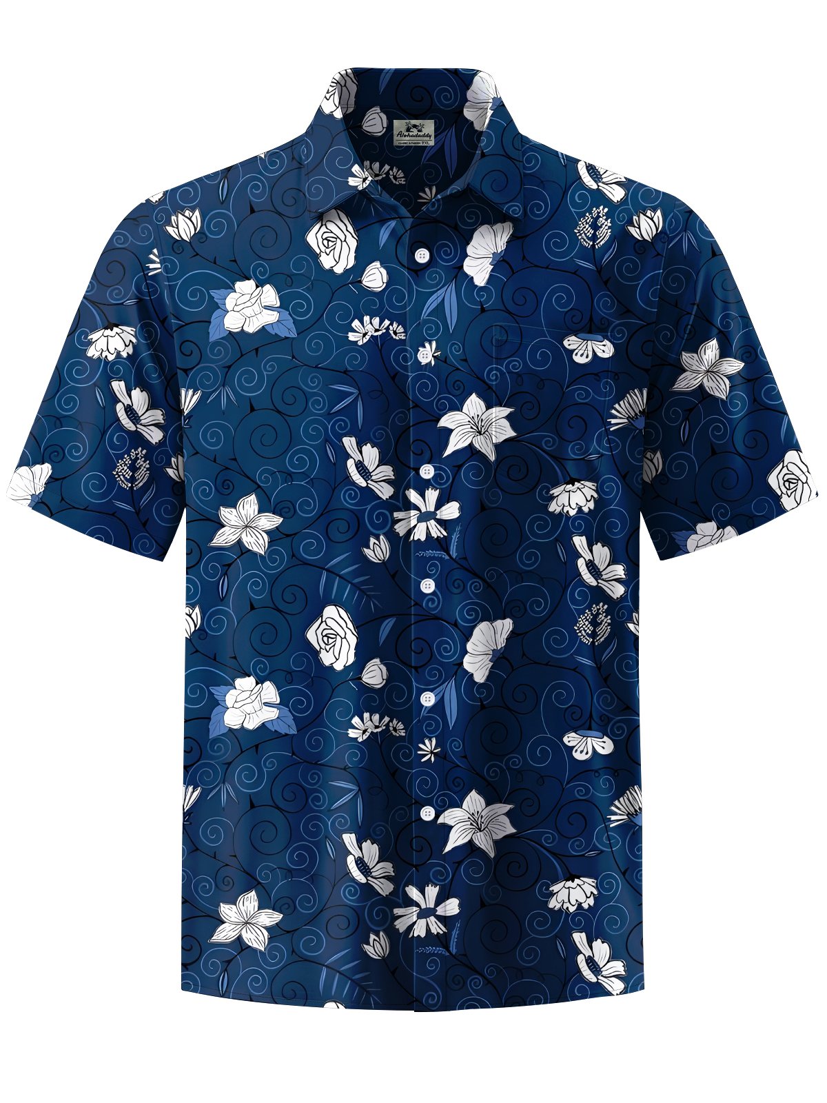 Alohadaddy® Hawaiian Floral Geometric Print Men's Pocket Shirt
