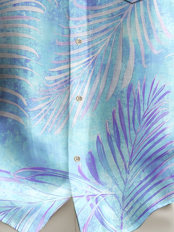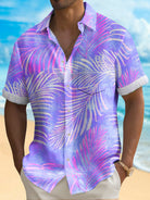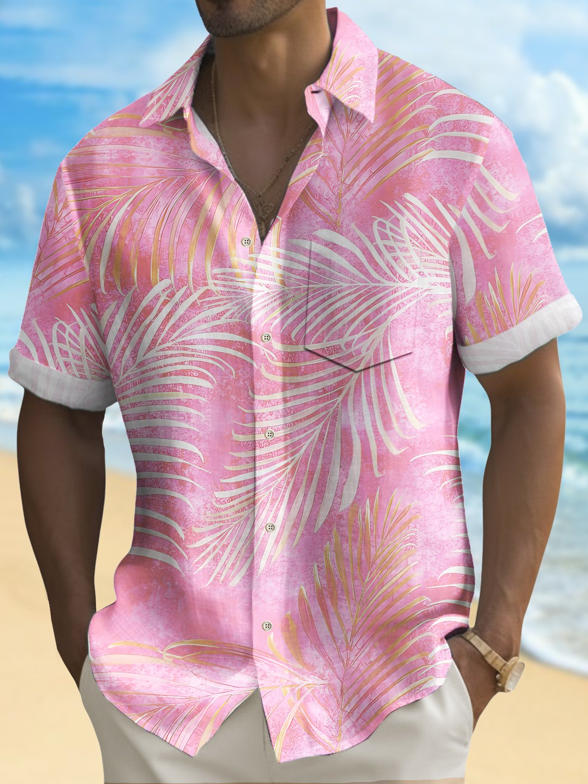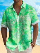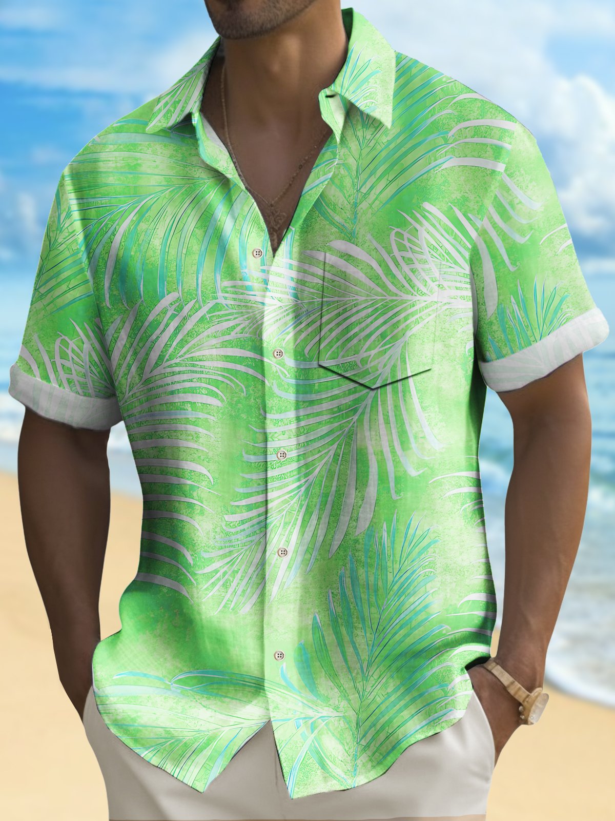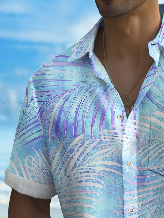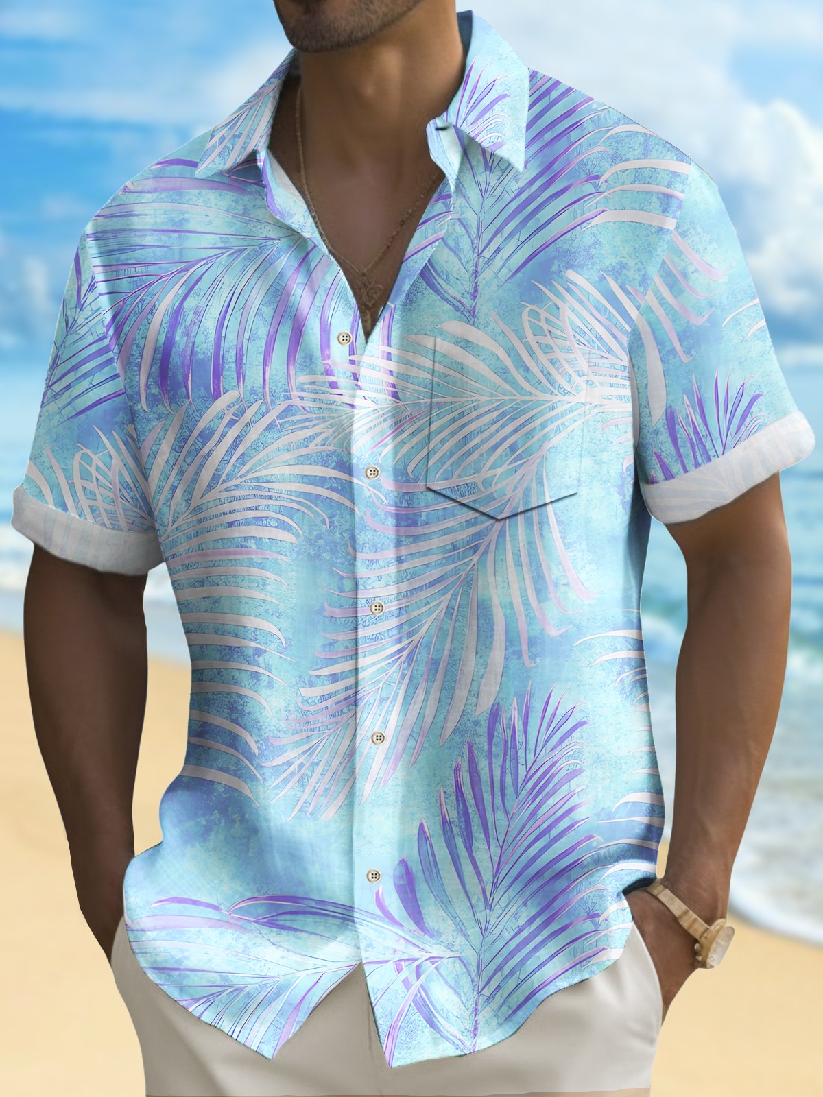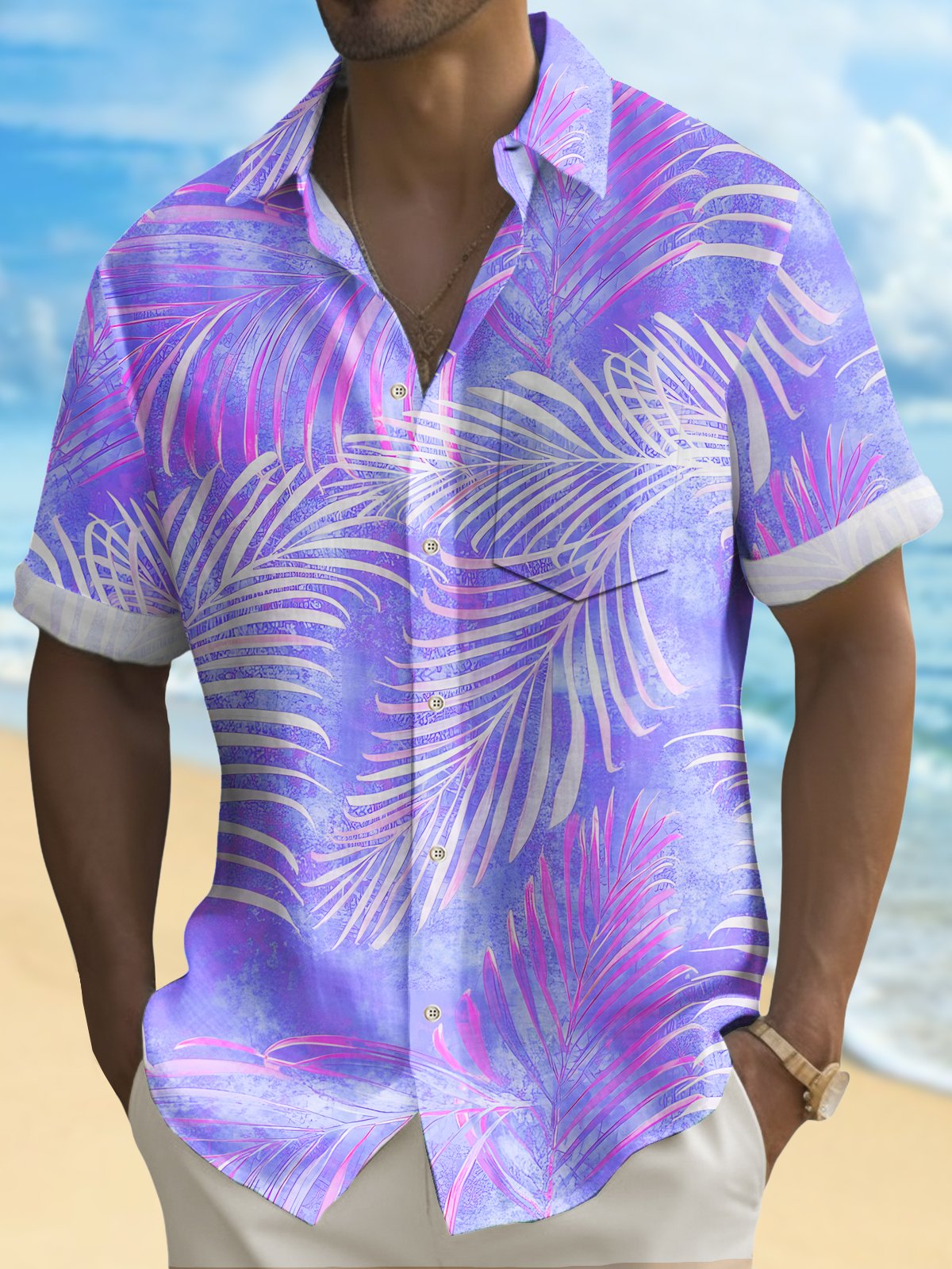 Alohadaddy Beach Vacation Men's Hawaiian Shirt Gradient Botanical Print Stretch Pocket Camping Shirt Big Tall