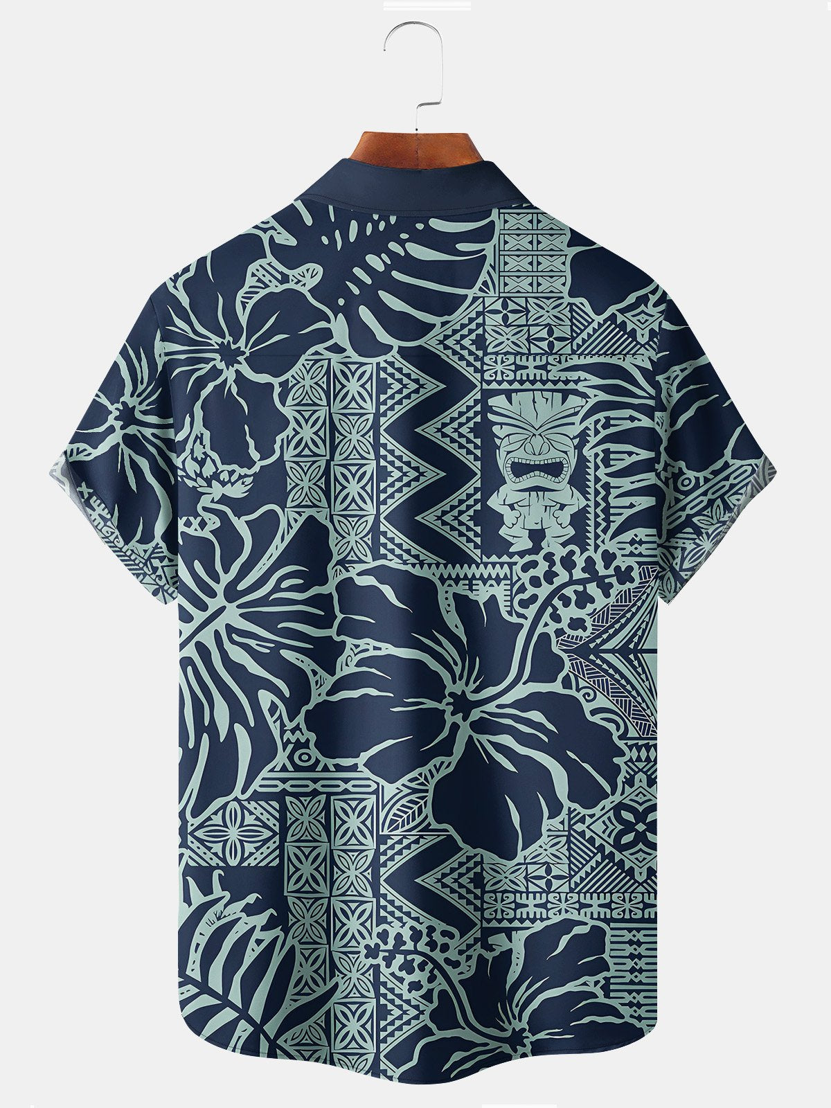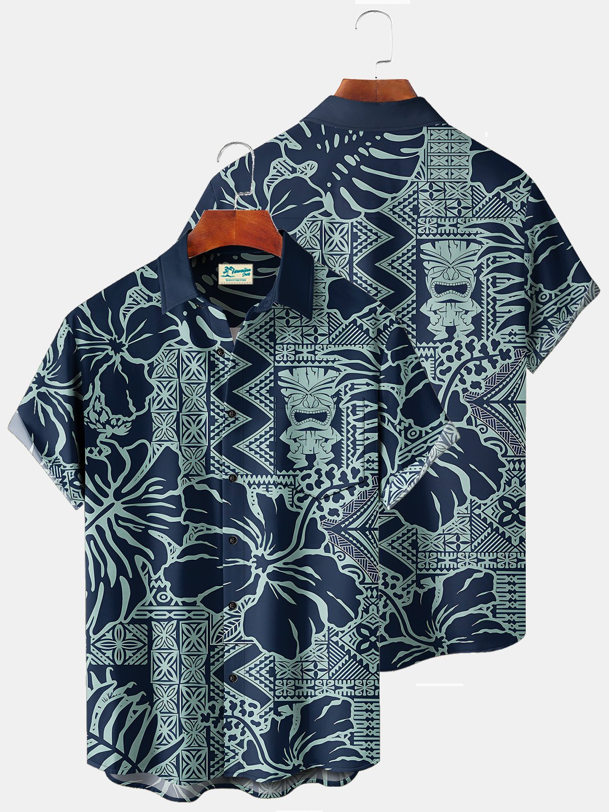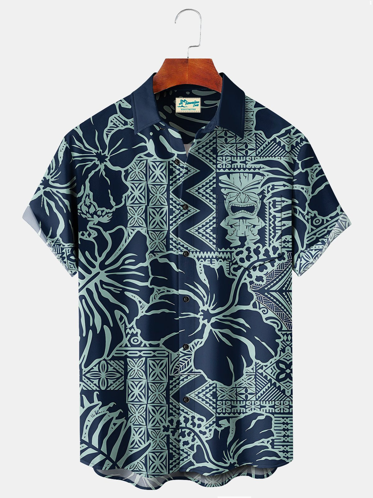 Alohadaddy Beach Vacation Tiki Totem Blue Men's Hawaiian Floral Shirts Stretch Oversized Aloha Camp Shirts