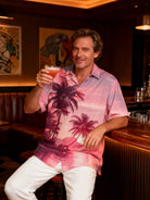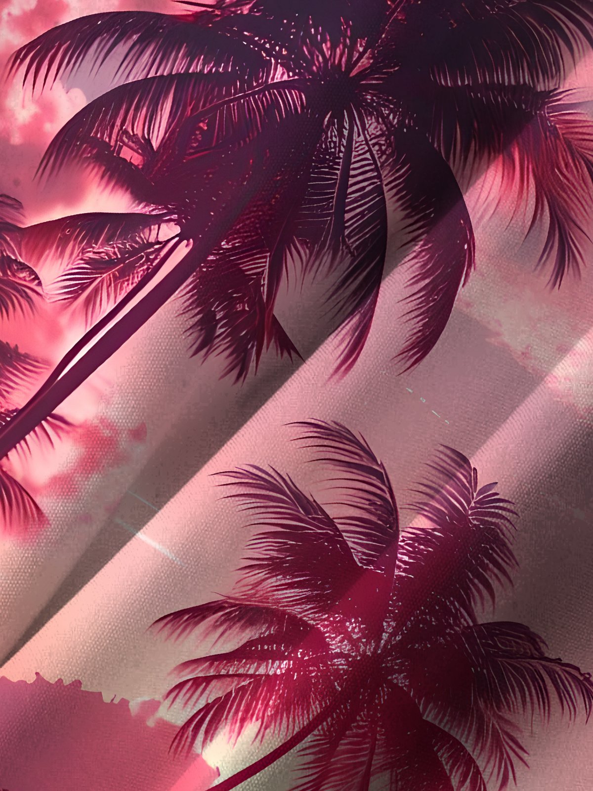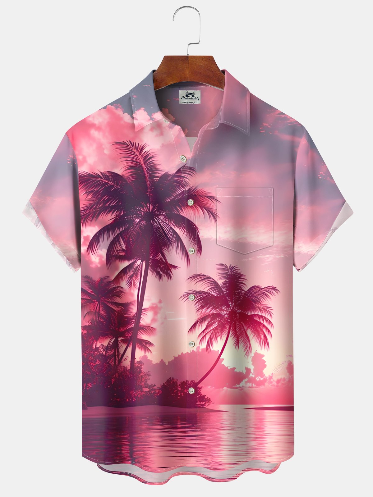 Alohadaddy Casual Everyday Palm Trees Beach Print Art Polyester Stretch Large Size Pocket Short Sleeve Shirt