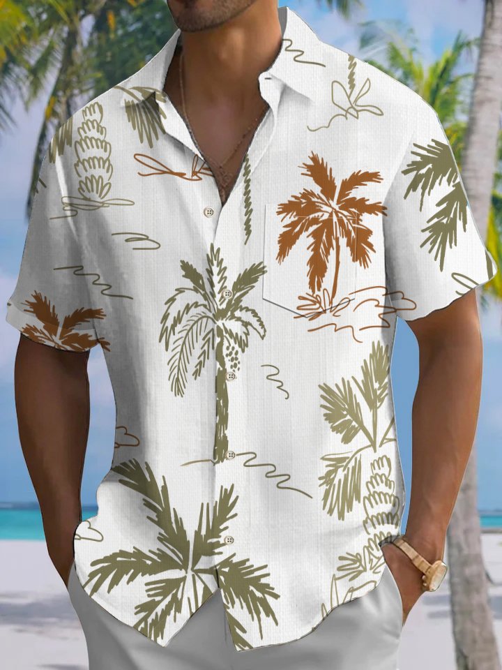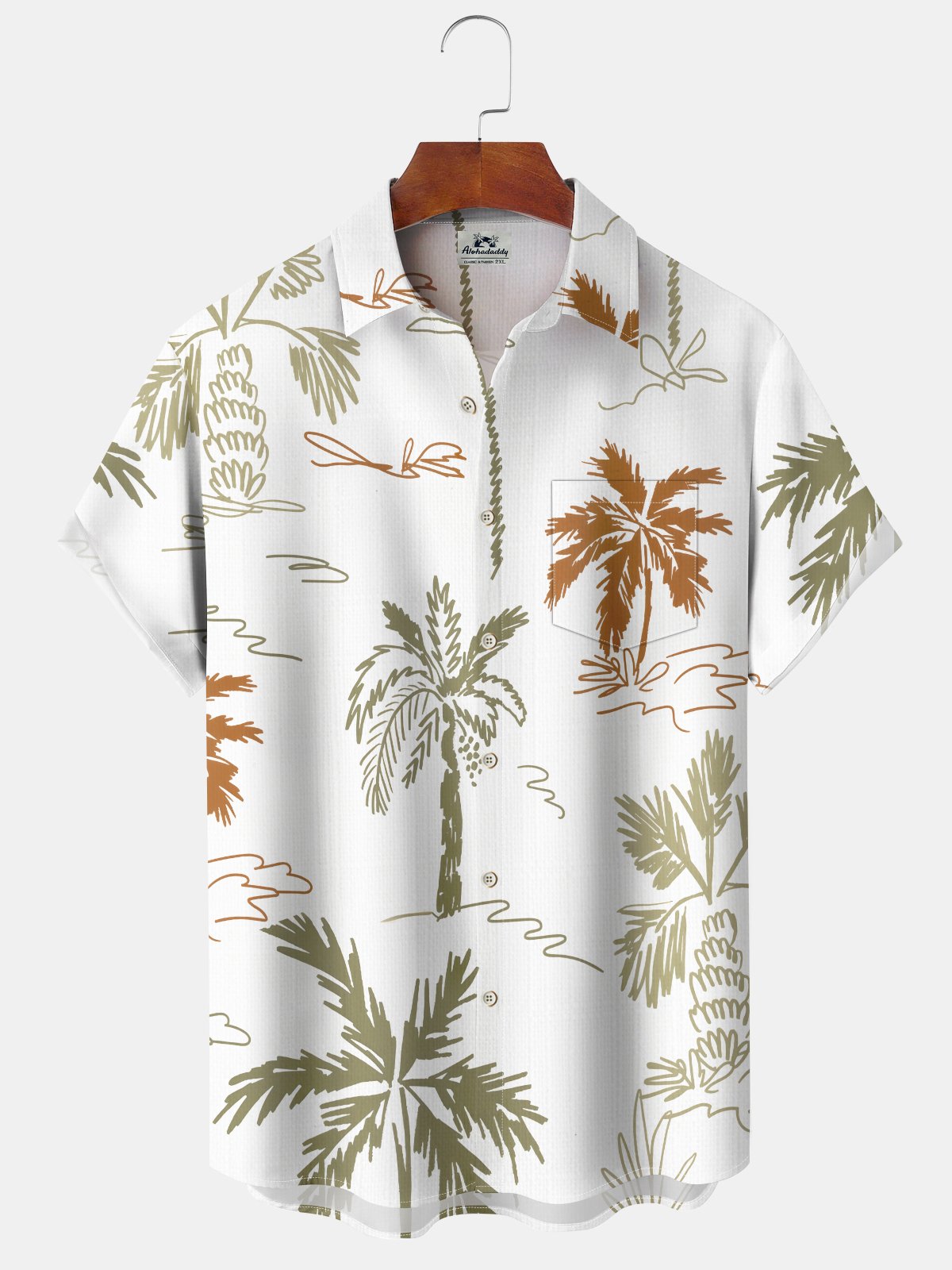 Alohadaddy Casual Hawaiian Palm Tree Button Cardigan Pocket Stretch Bamboo Long Oversized Short Sleeve Shirt