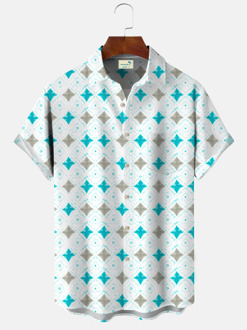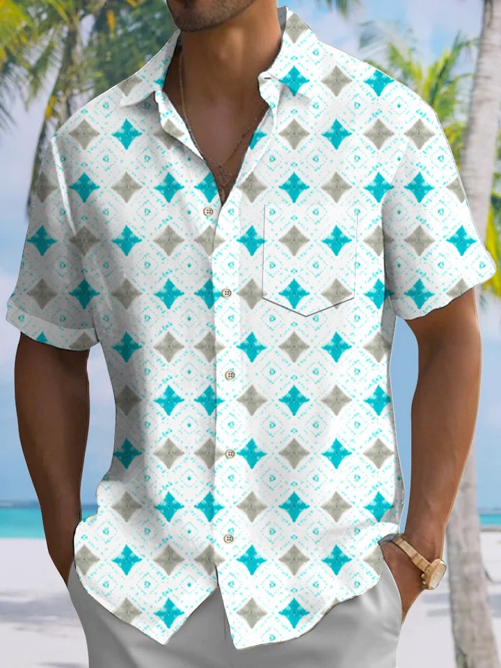 Alohadaddy Contrast Color Geometric Pattern Pocket Button Casual Short Sleeve Shirt