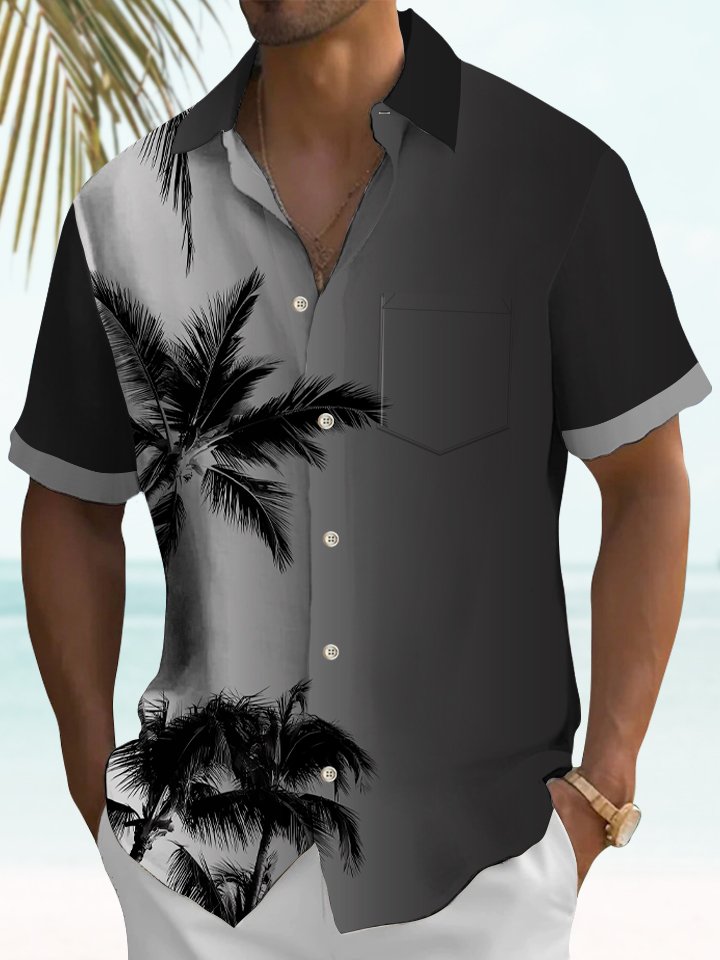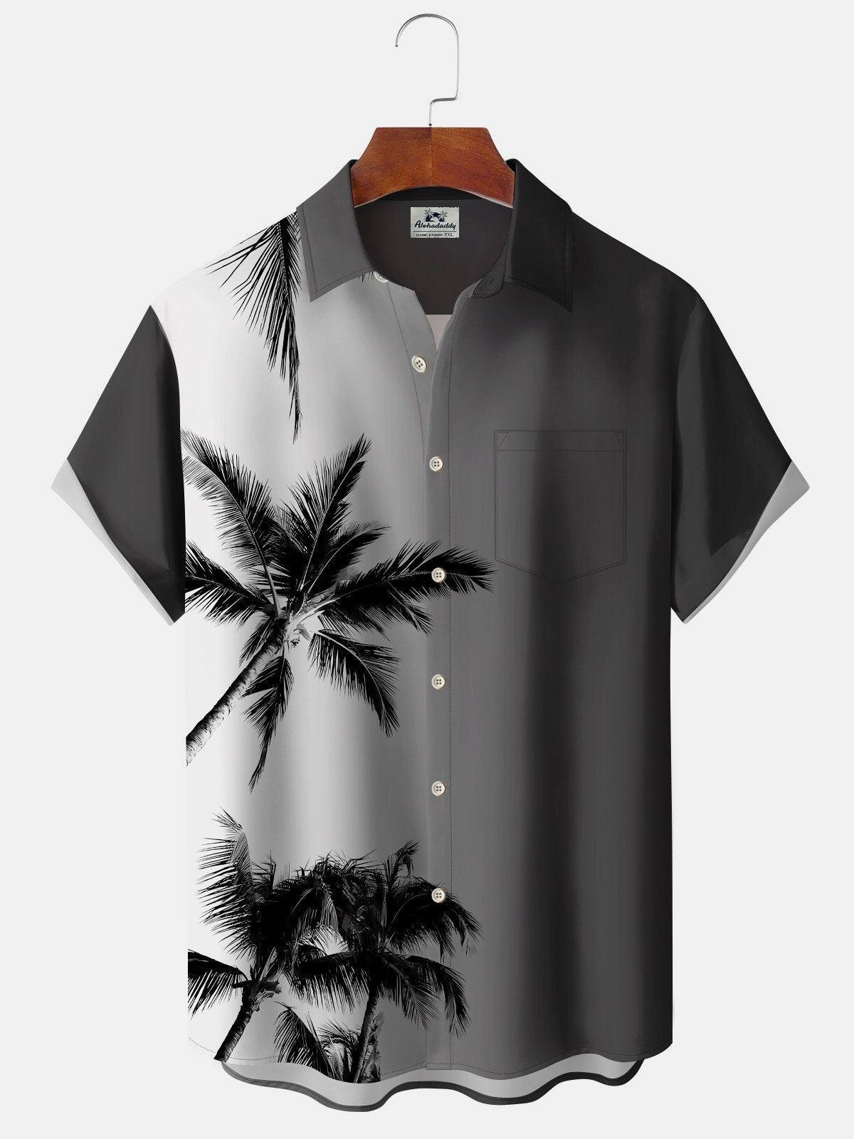 Alohadaddy Deep Gray Ombre Coconut Trees Casual Cotton-Blend Plus Size Shirts
