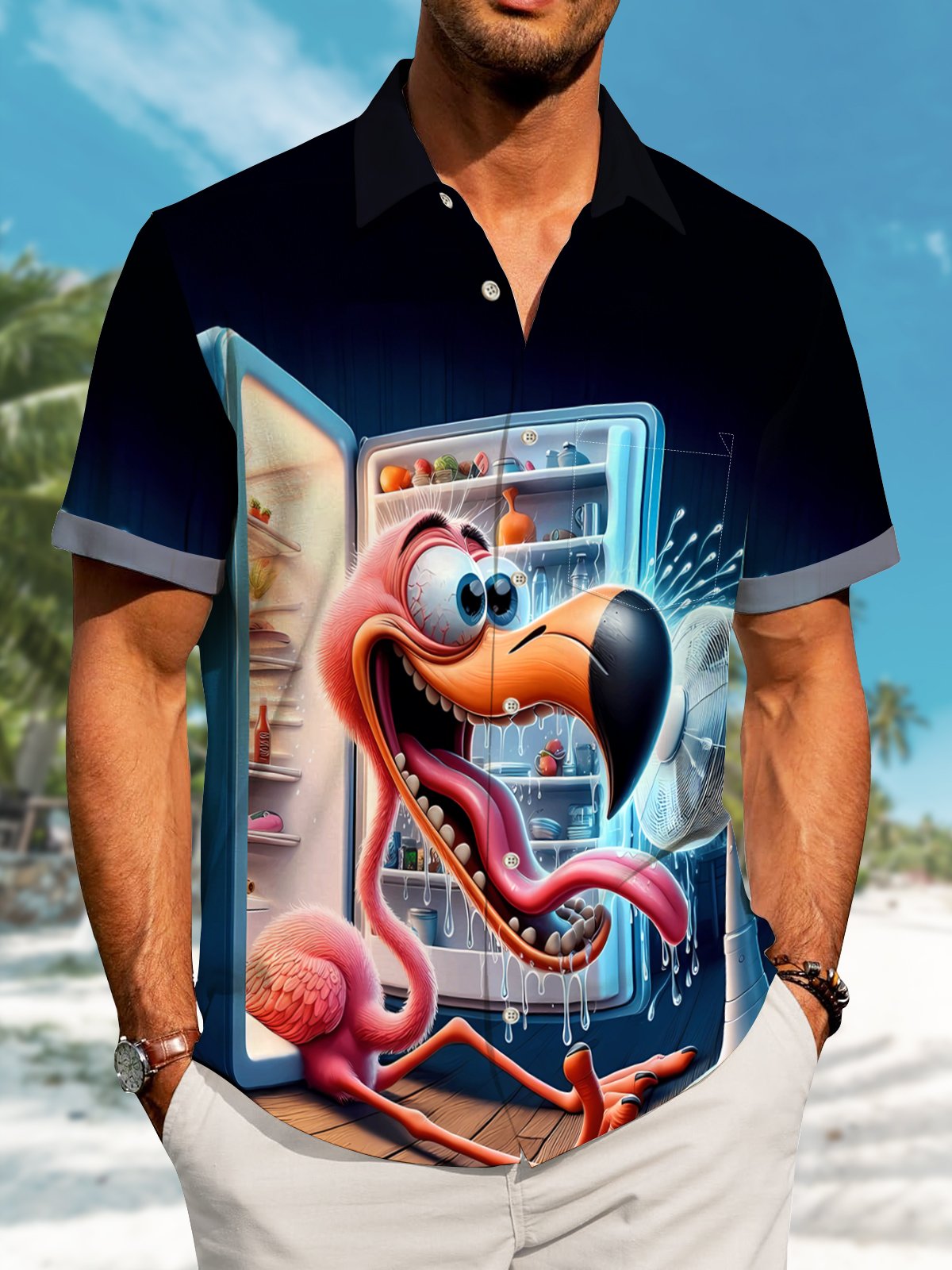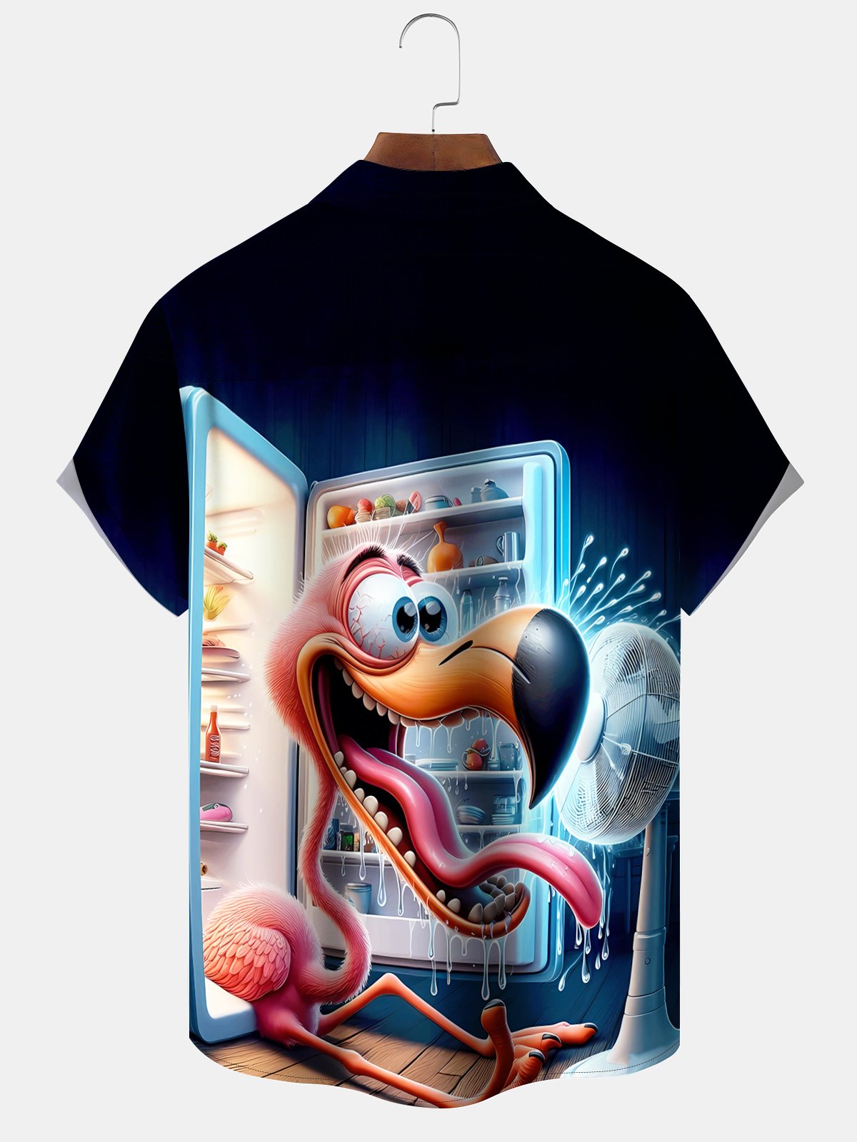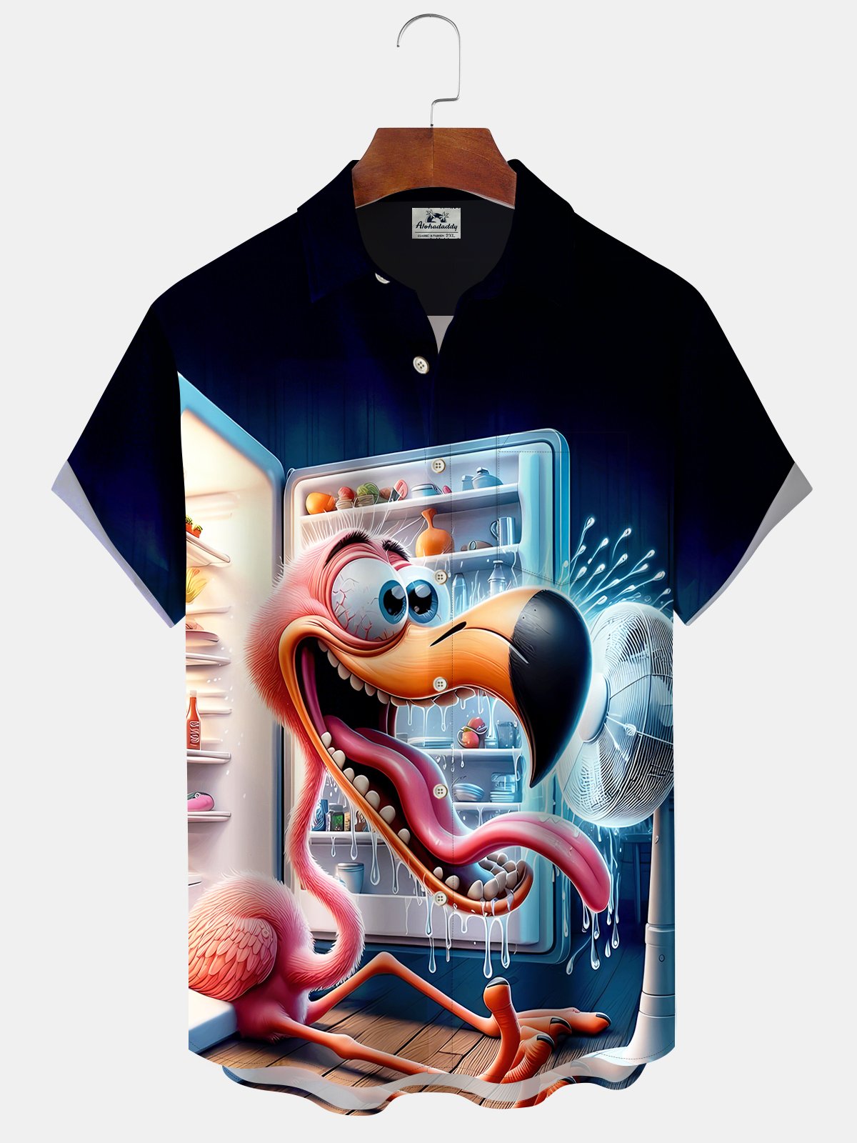 Alohadaddy Hawaii Resort Style Hot Flamingo Refrigerator Print Art Button Stretch Large Size Men's Shirt