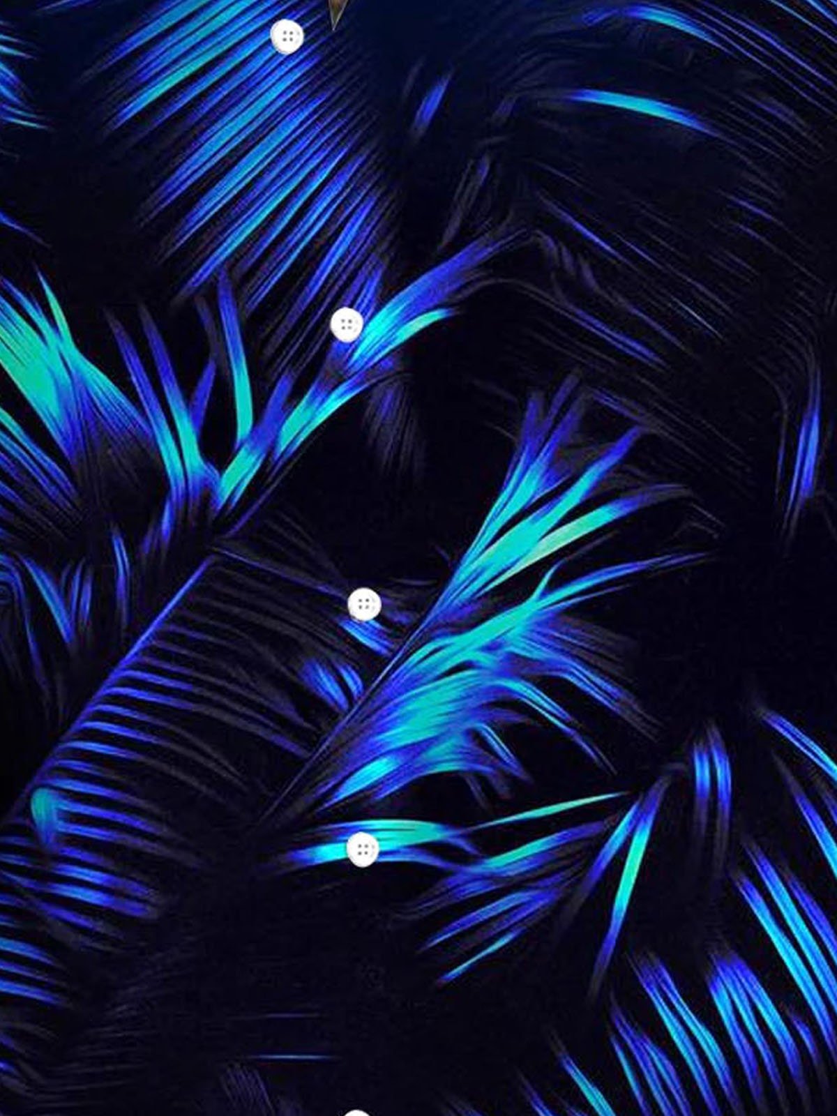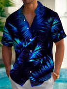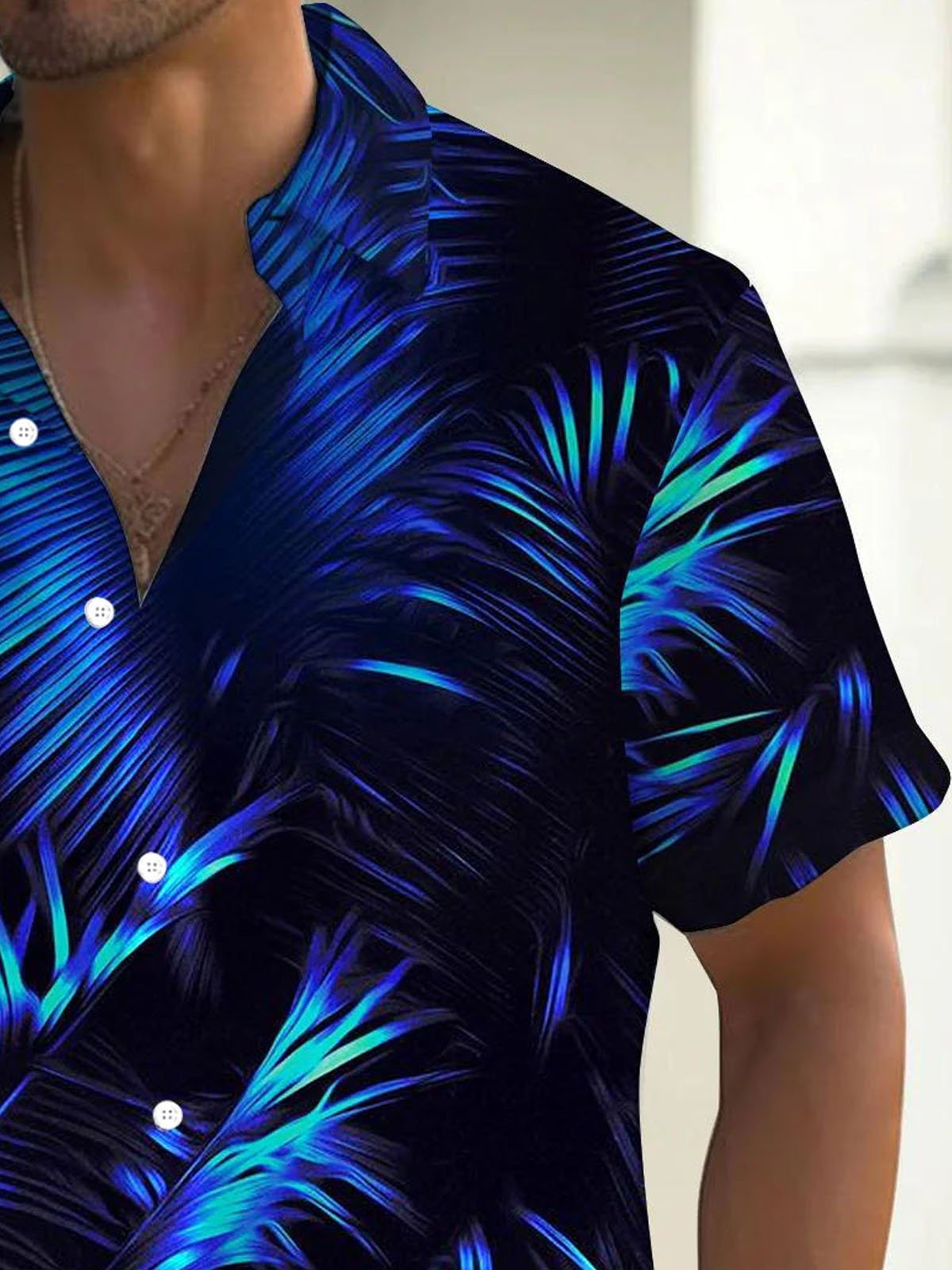 Alohadaddy Hawaiian Blue Floral Plant Leaves 3D Print Men's Button Pocket Short Sleeve Shirt
