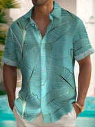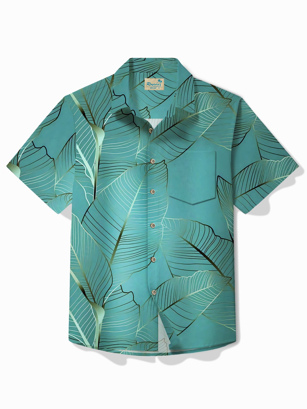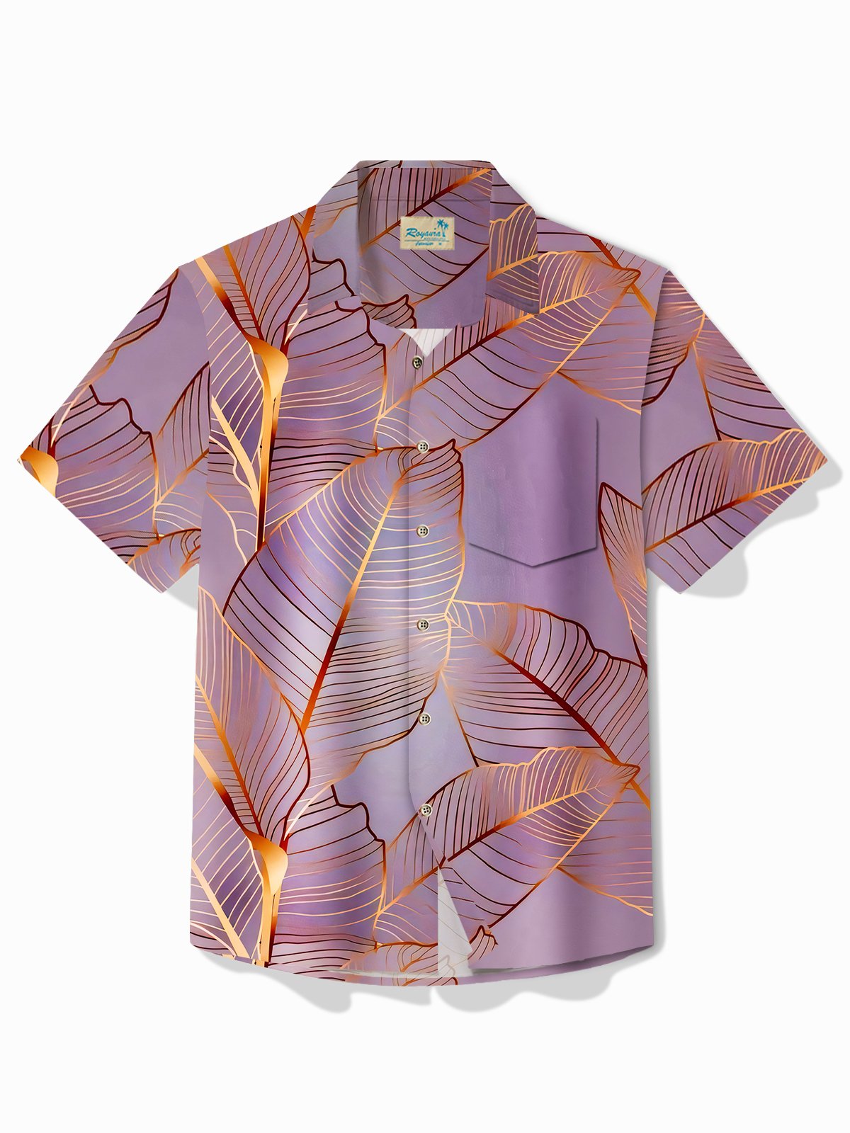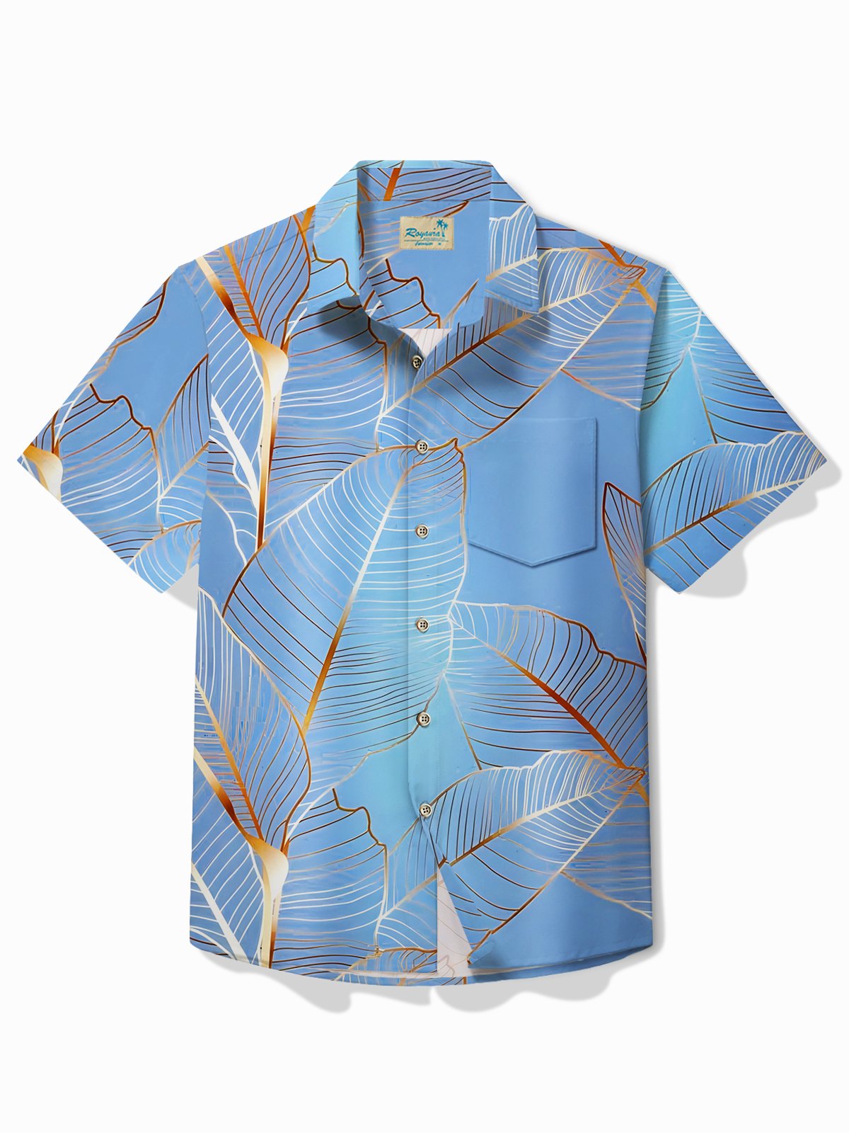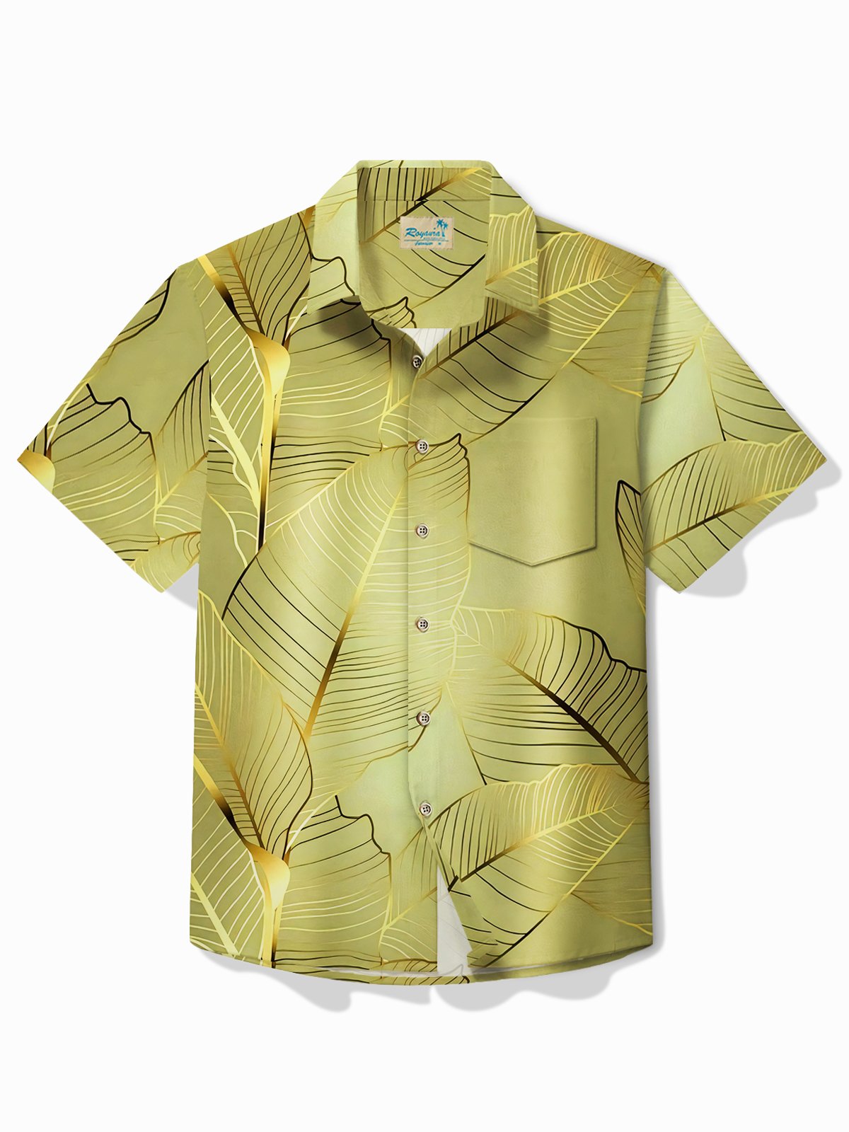Alohadaddy Hawaiian Botanical Gold Leaf Print Men's Button Pocket Shirt