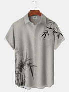 Alohadaddy Hawaiian Casual Ink Bamboo Print Art Pocket Button Cardigan Stretch Large Size Short Sleeve Shirt