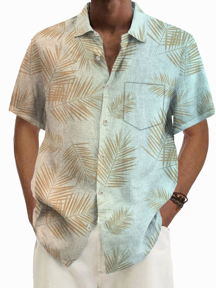 Alohadaddy Hawaiian Floral Gradient Men's Button Pocket Short Sleeve Shirt